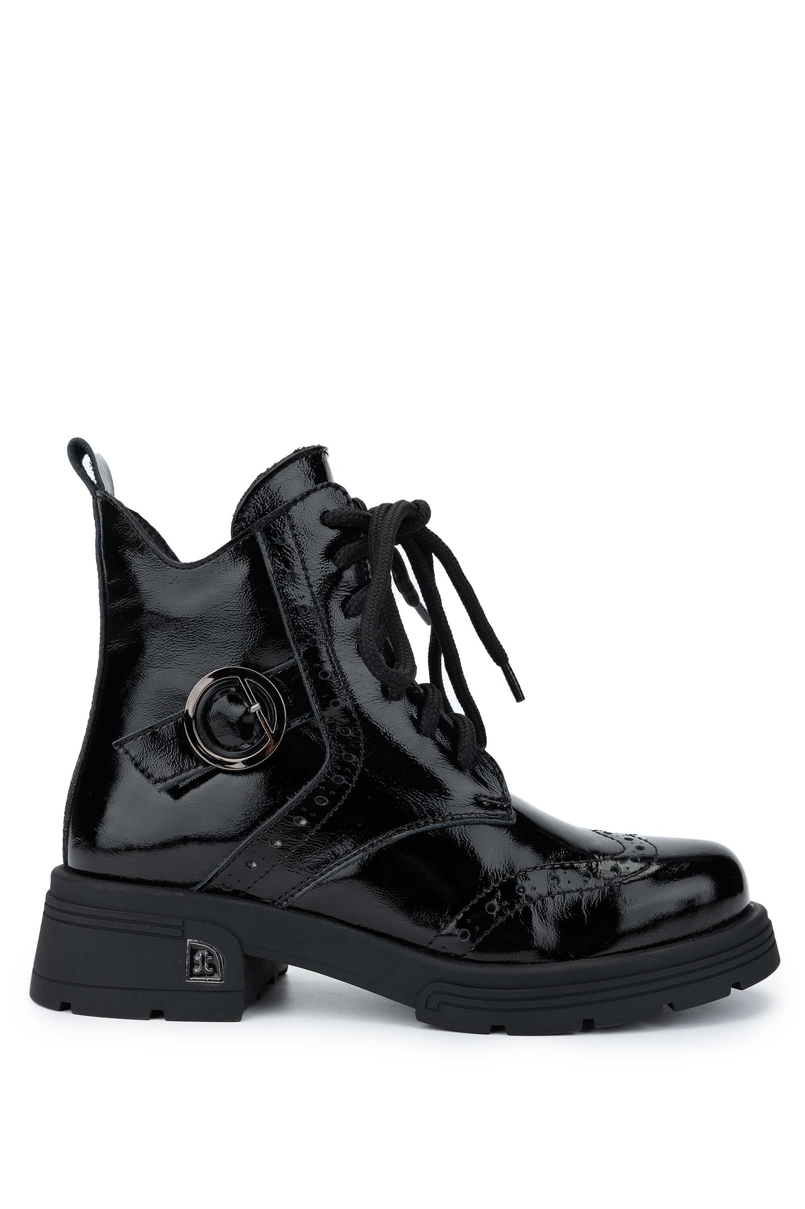 Tamer Tanca Kadın Hakiki Deri Siyah Rugan Casual Bot