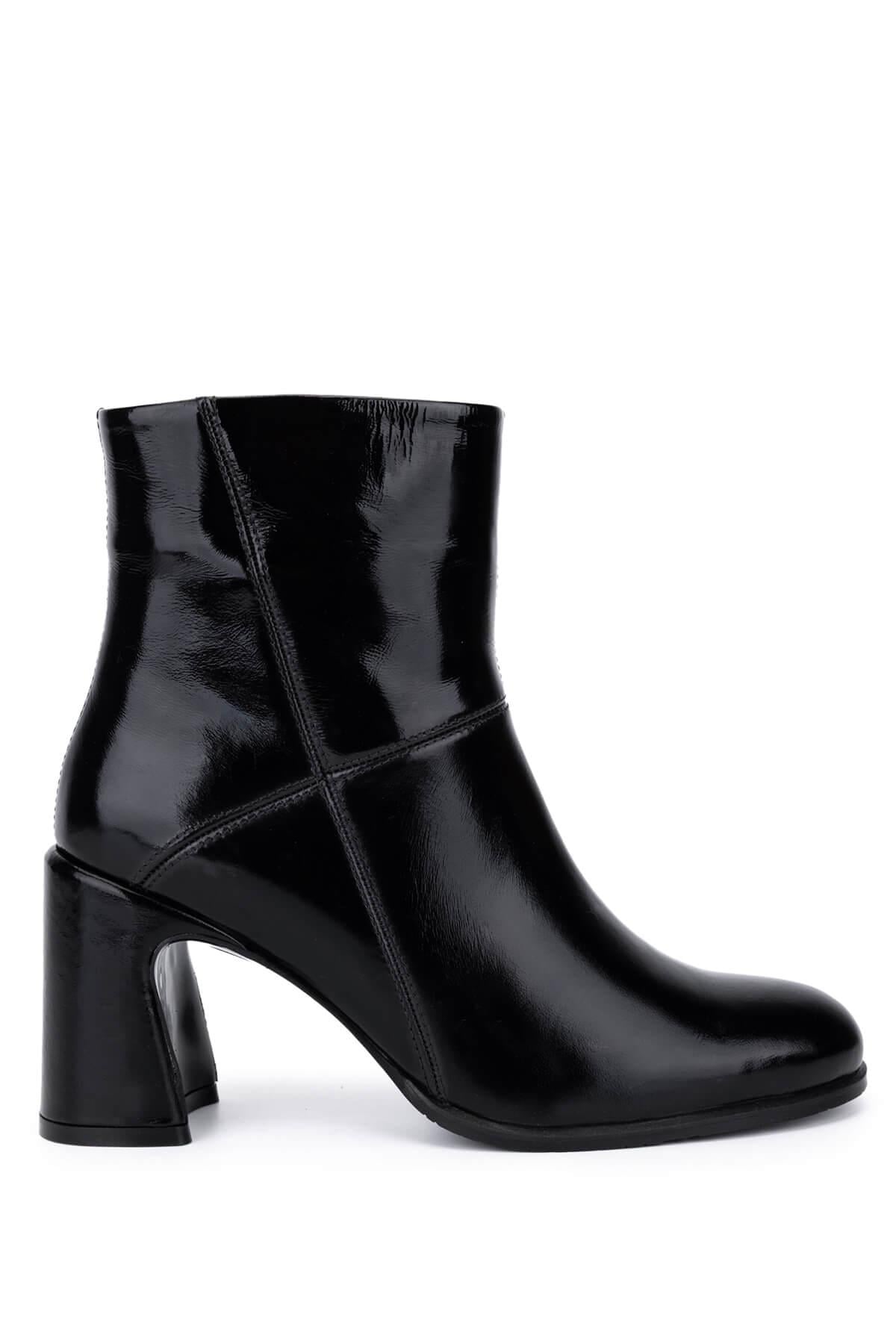 Tamer Tanca Kadın Hakiki Deri Siyah Rugan Klasik Bot