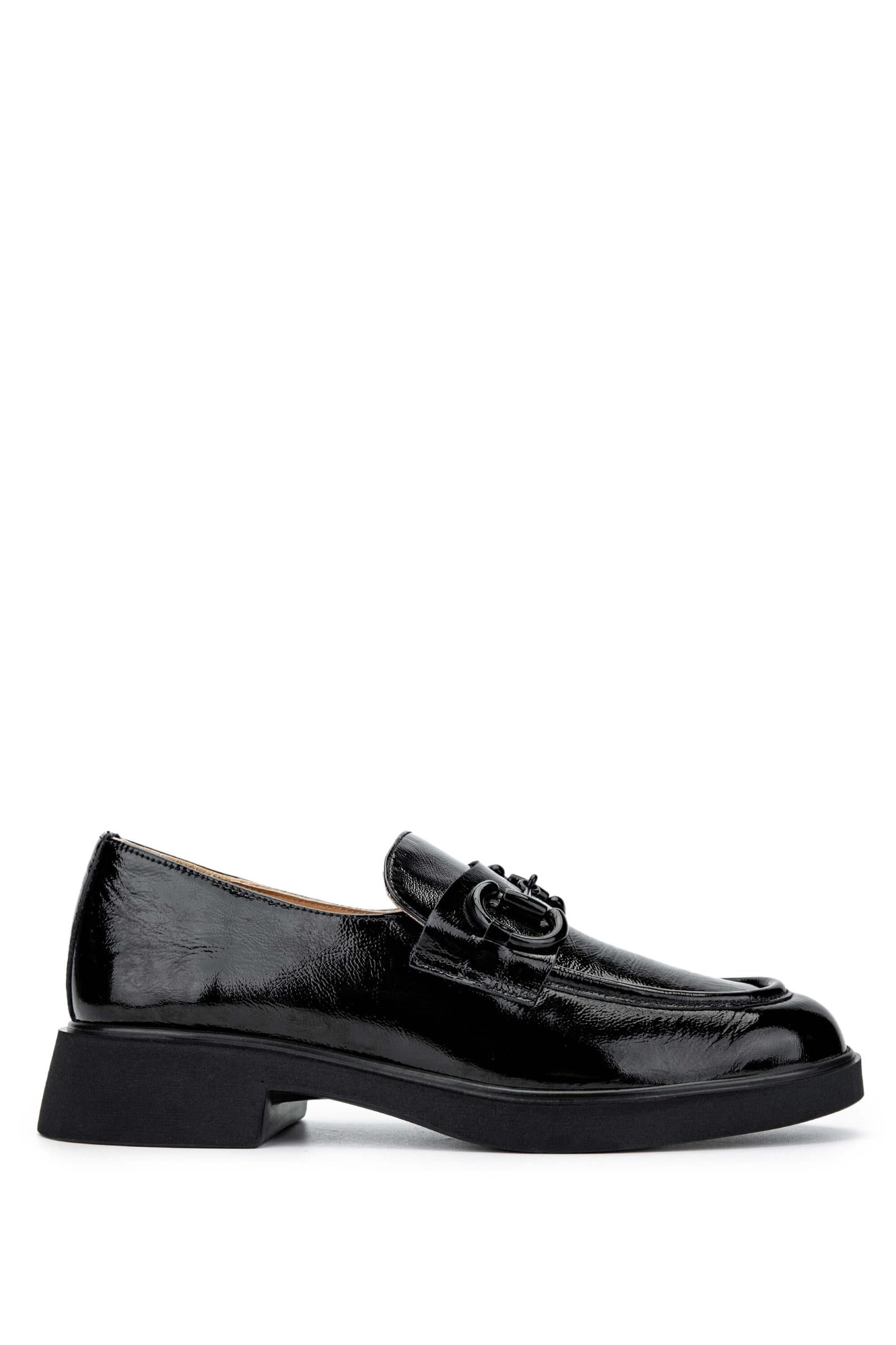 Tamer Tanca Kadın Hakiki Deri Siyah Rugan Loafer Ayakkabı
