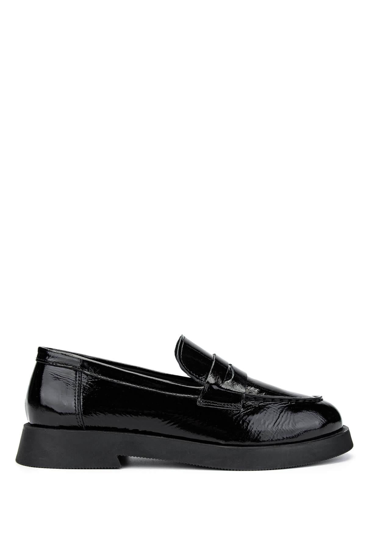 Tamer Tanca Kadın Hakiki Deri Siyah Rugan Loafer Ayakkabı