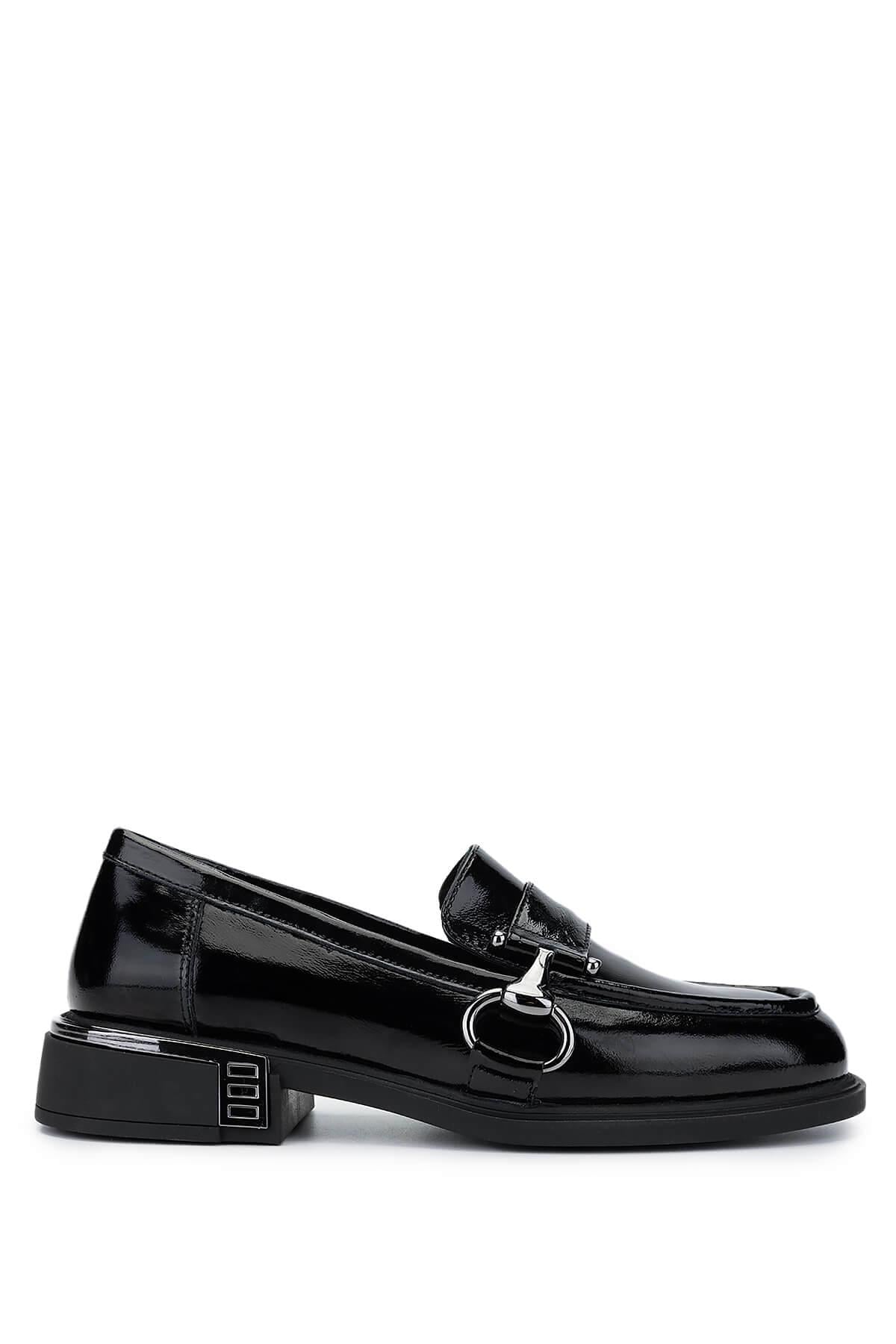 Tamer Tanca Kadın Hakiki Deri Siyah Rugan Loafer Ayakkabı