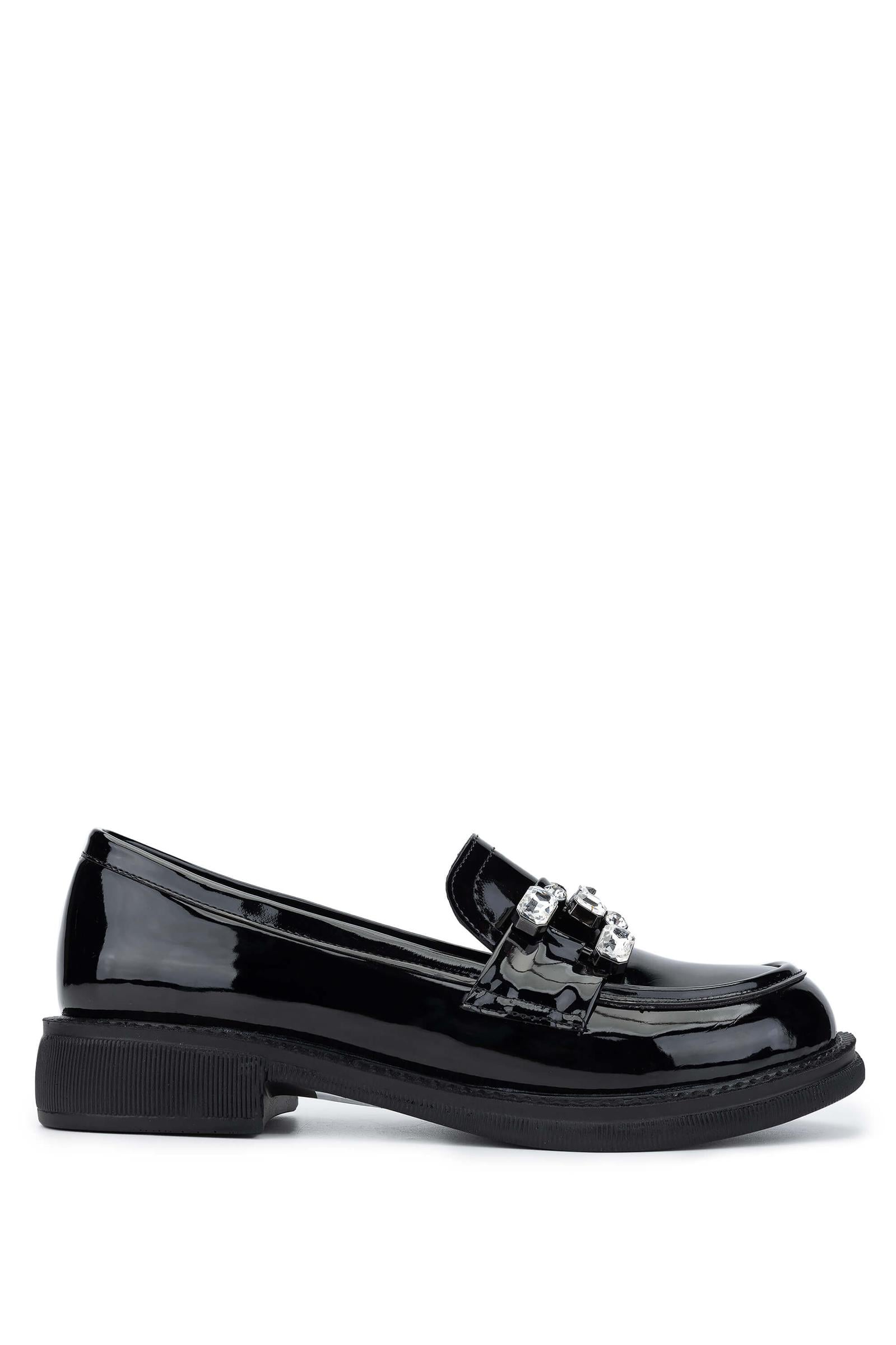 Tamer Tanca Kadın Hakiki Deri Siyah Rugan Loafer Ayakkabı