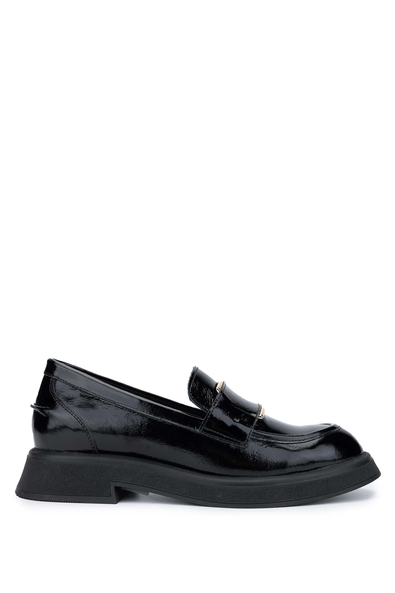 Tamer Tanca Kadın Hakiki Deri Siyah Rugan Loafer Ayakkabı