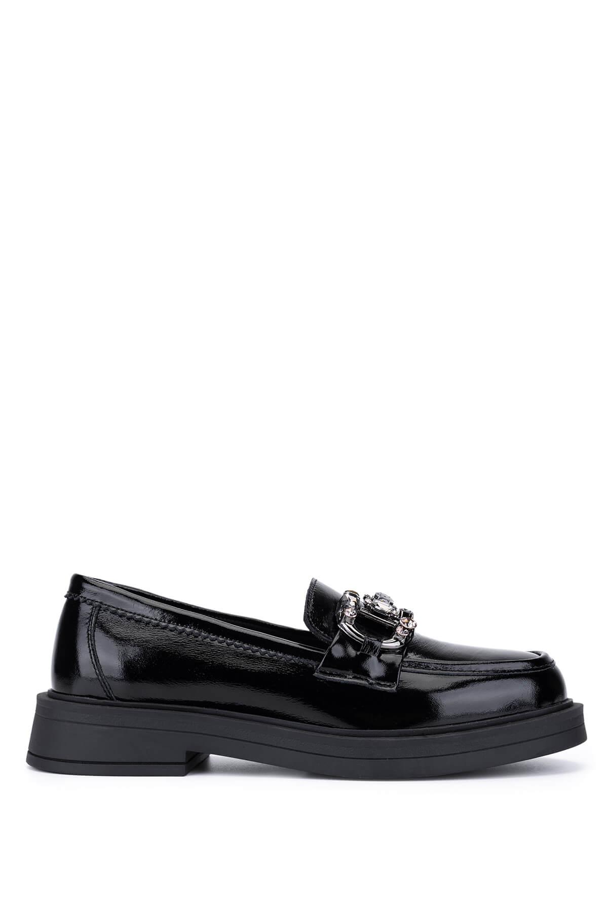 Tamer Tanca Kadın Hakiki Deri Siyah Rugan Loafer Ayakkabı