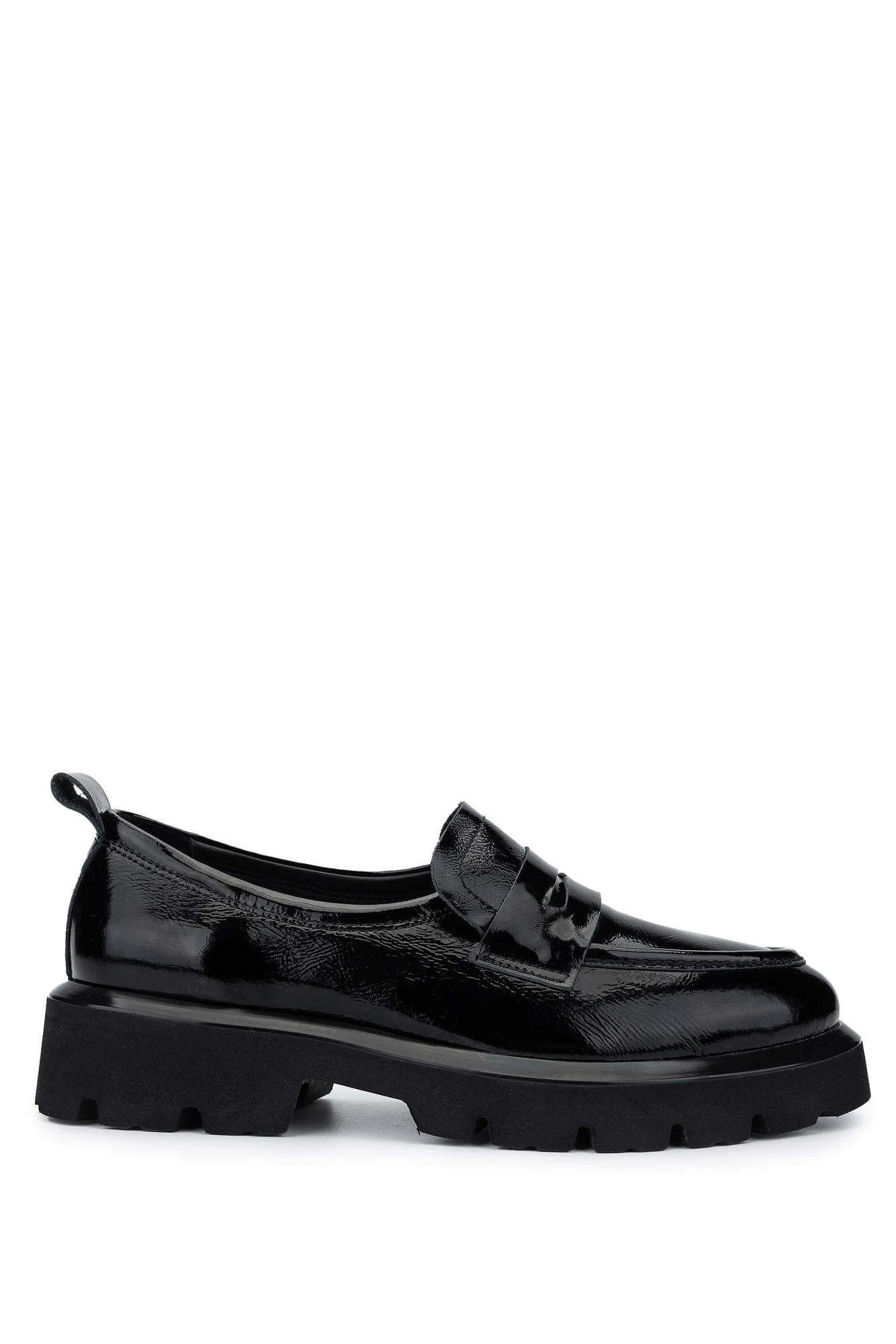 Tamer Tanca Kadın Hakiki Deri Siyah Rugan Loafer Ayakkabı