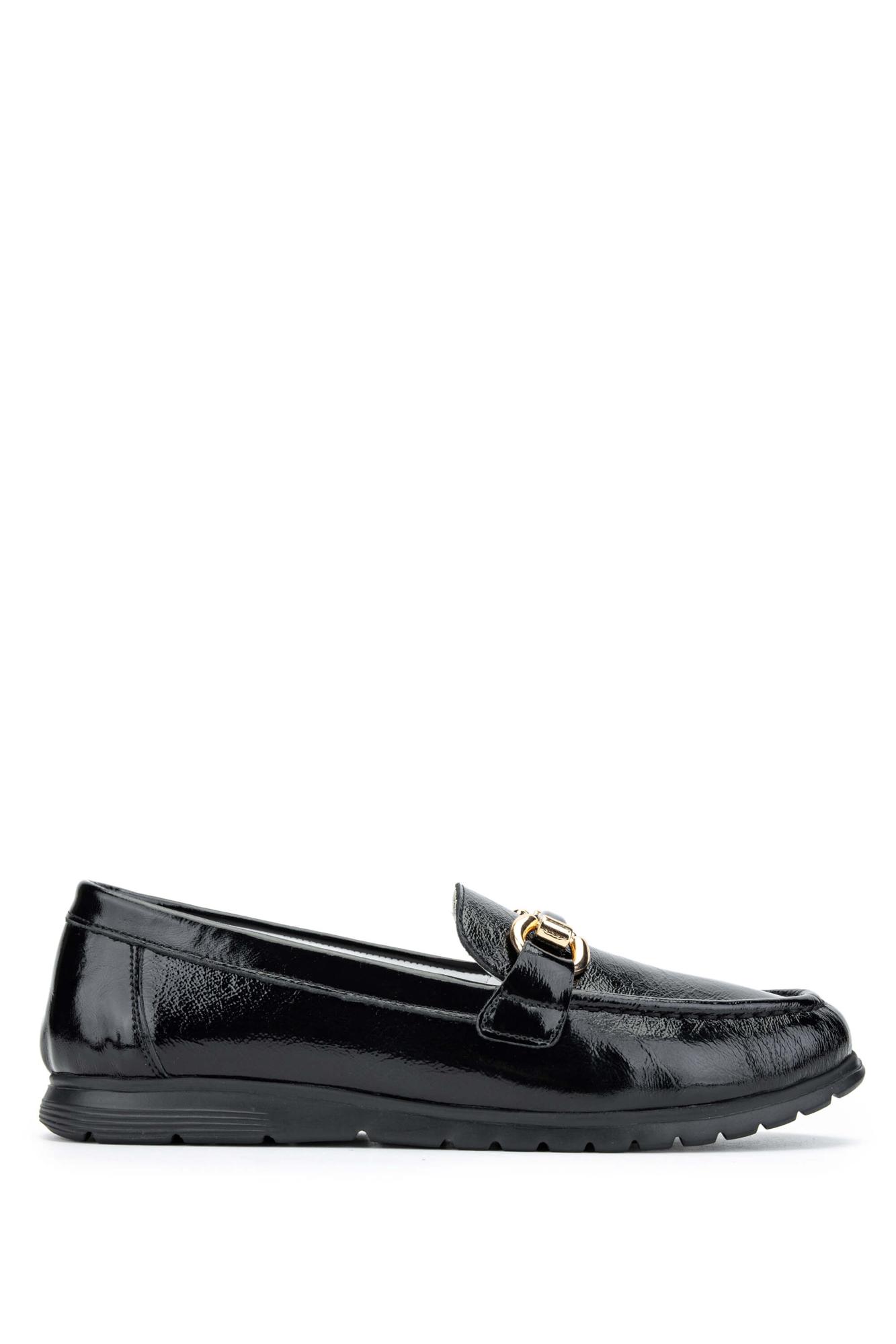Tamer Tanca Kadın Hakiki Deri Siyah Rugan Loafer Ayakkabı