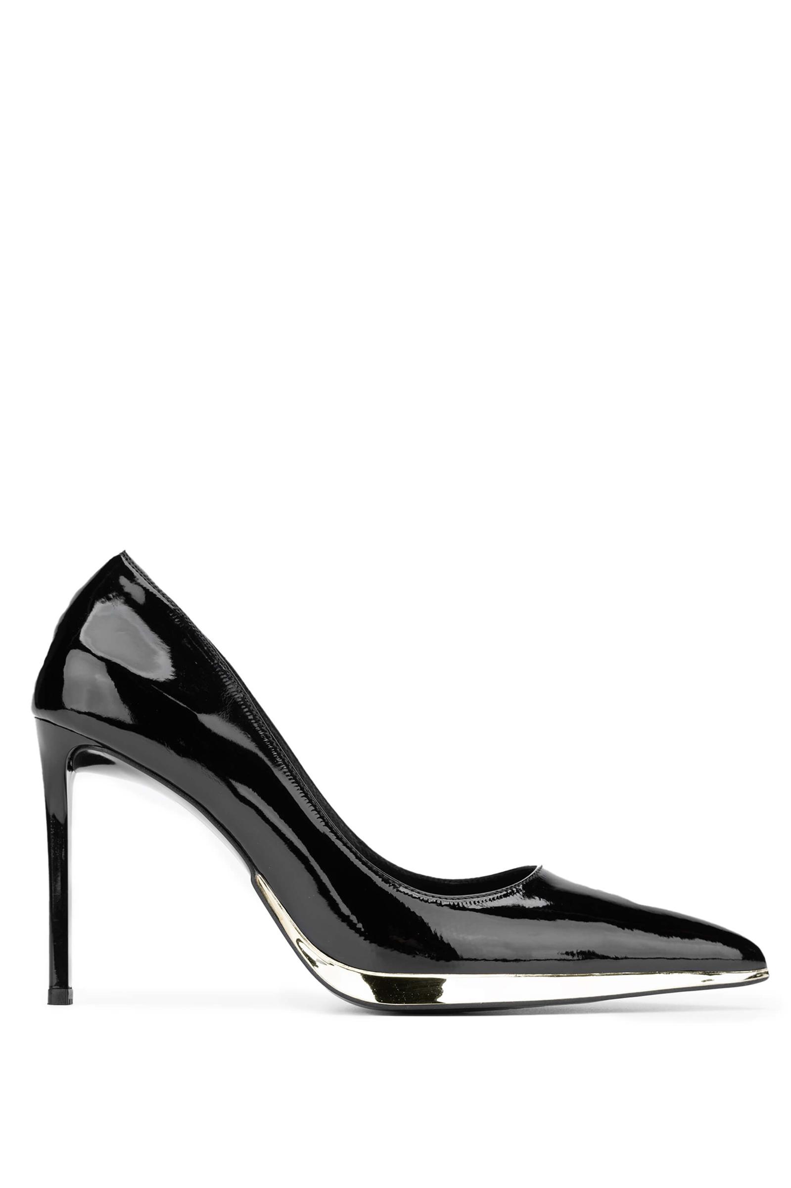 Tamer Tanca Kadın Hakiki Deri Siyah Rugan Topuklu Ayakkabı