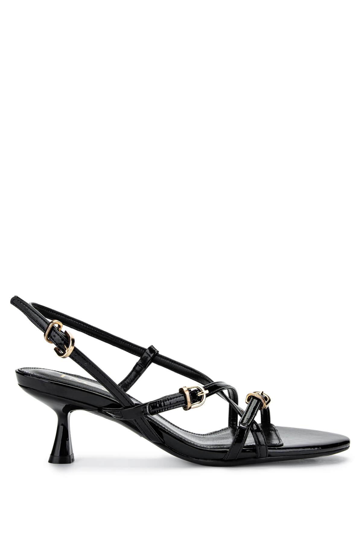 Tamer Tanca Kadın Hakiki Deri Siyah Rugan Topuklu Ayakkabı