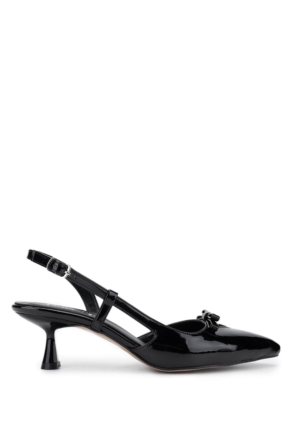Tamer Tanca Kadın Hakiki Deri Siyah Rugan Topuklu Ayakkabı