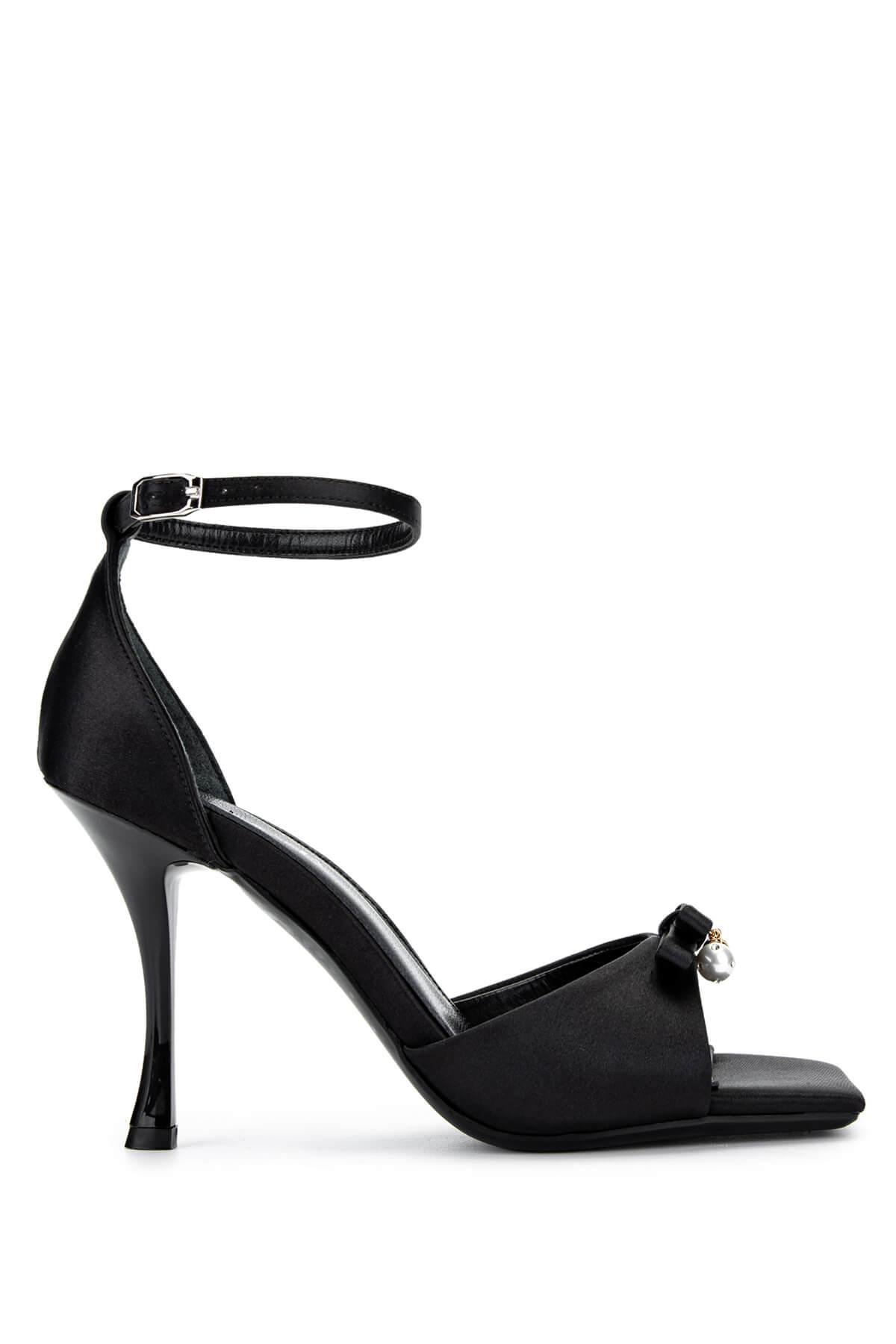 Tamer Tanca Kadın Hakiki Deri Siyah Saten Topuklu Ayakkabı