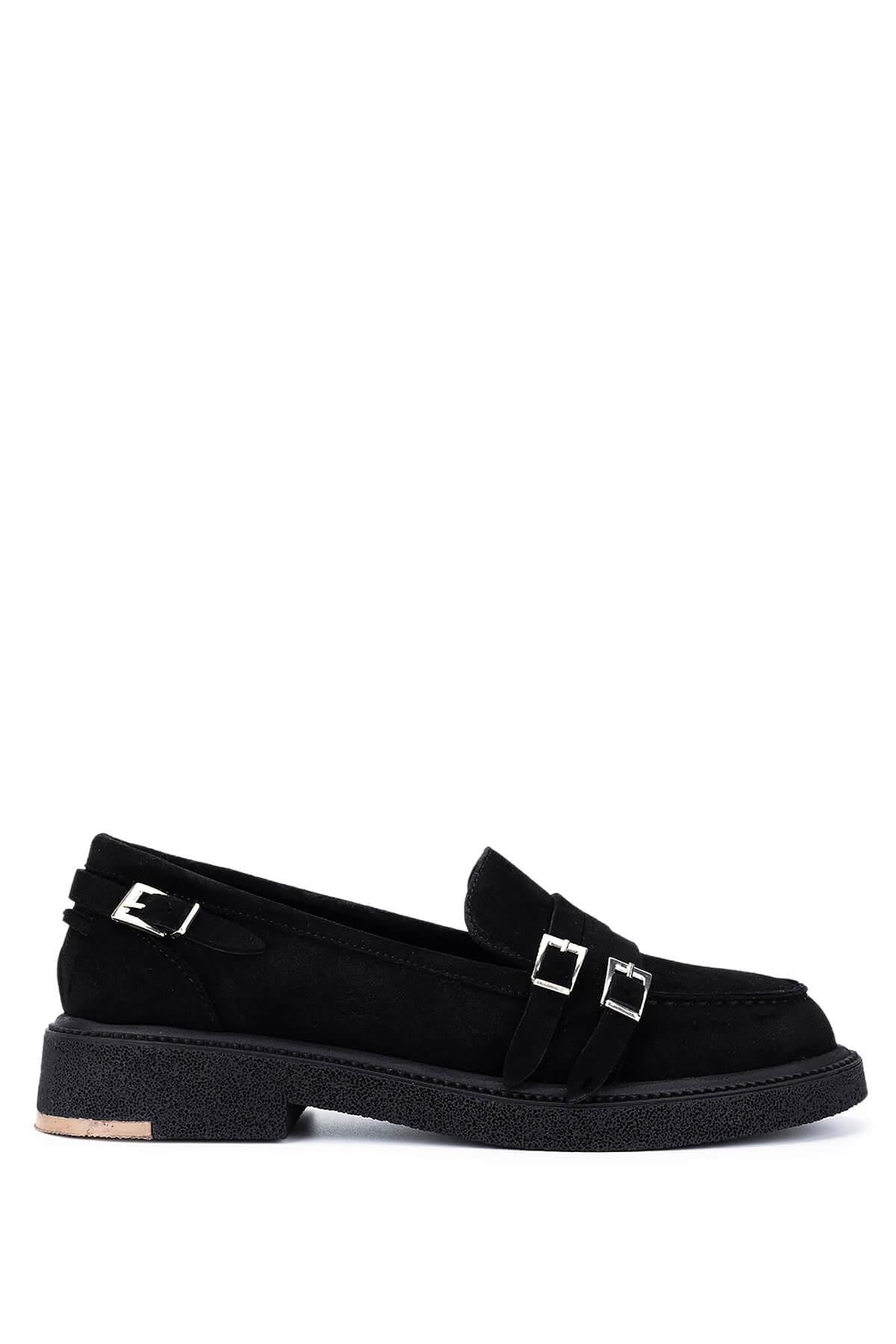 Tamer Tanca Kadın Hakiki Deri Siyah Süet Loafer Ayakkabı