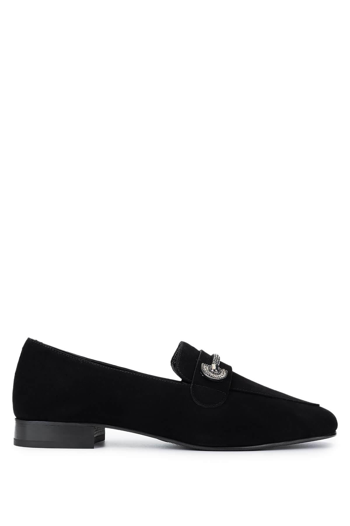 Tamer Tanca Kadın Hakiki Deri Siyah Süet Loafer Ayakkabı