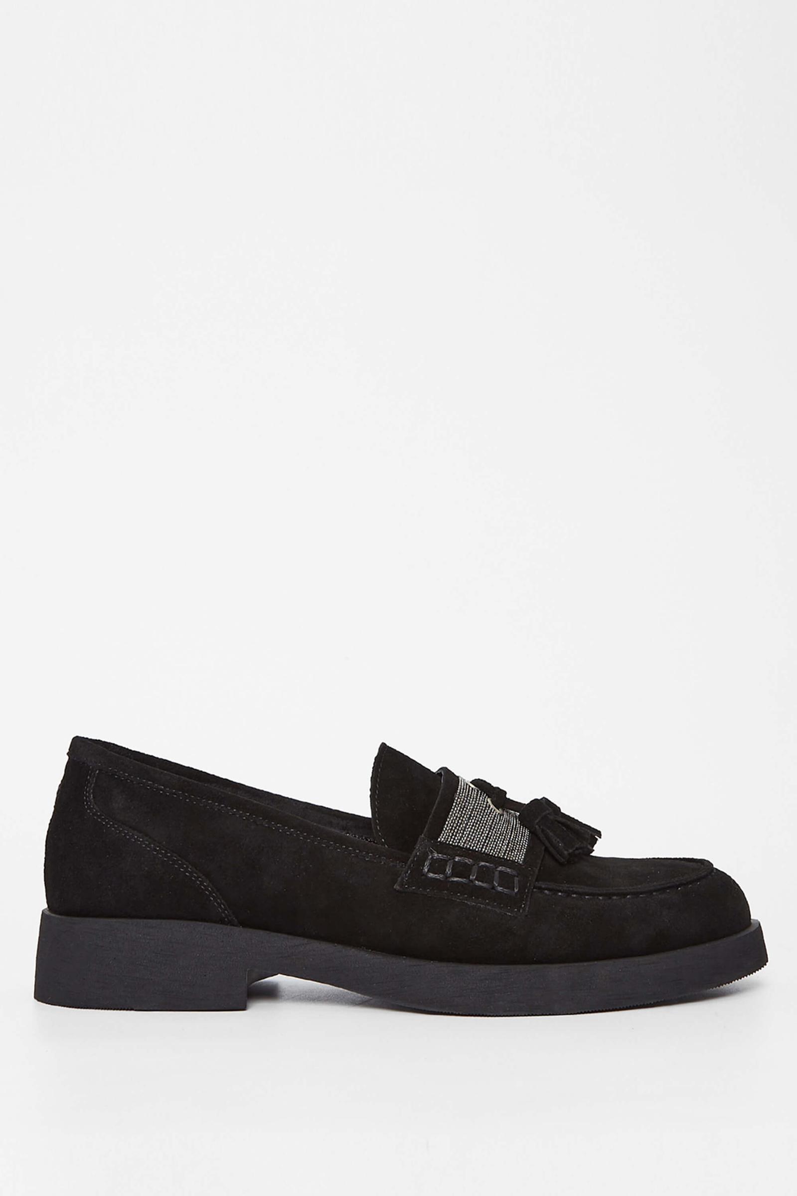 Tamer Tanca Kadın Hakiki Deri Siyah Süet Loafer Ayakkabı