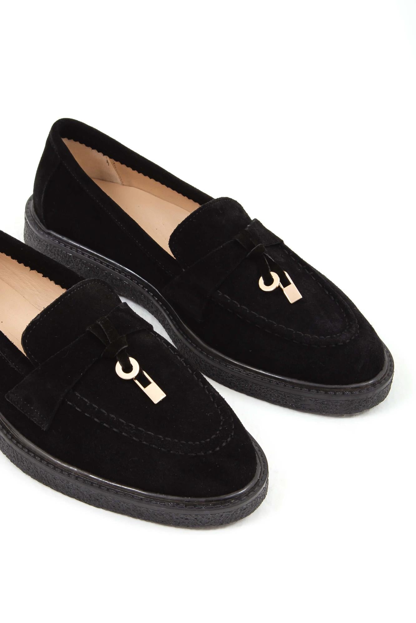 Tamer Tanca Kadın Hakiki Deri Siyah Süet Loafer Ayakkabı
