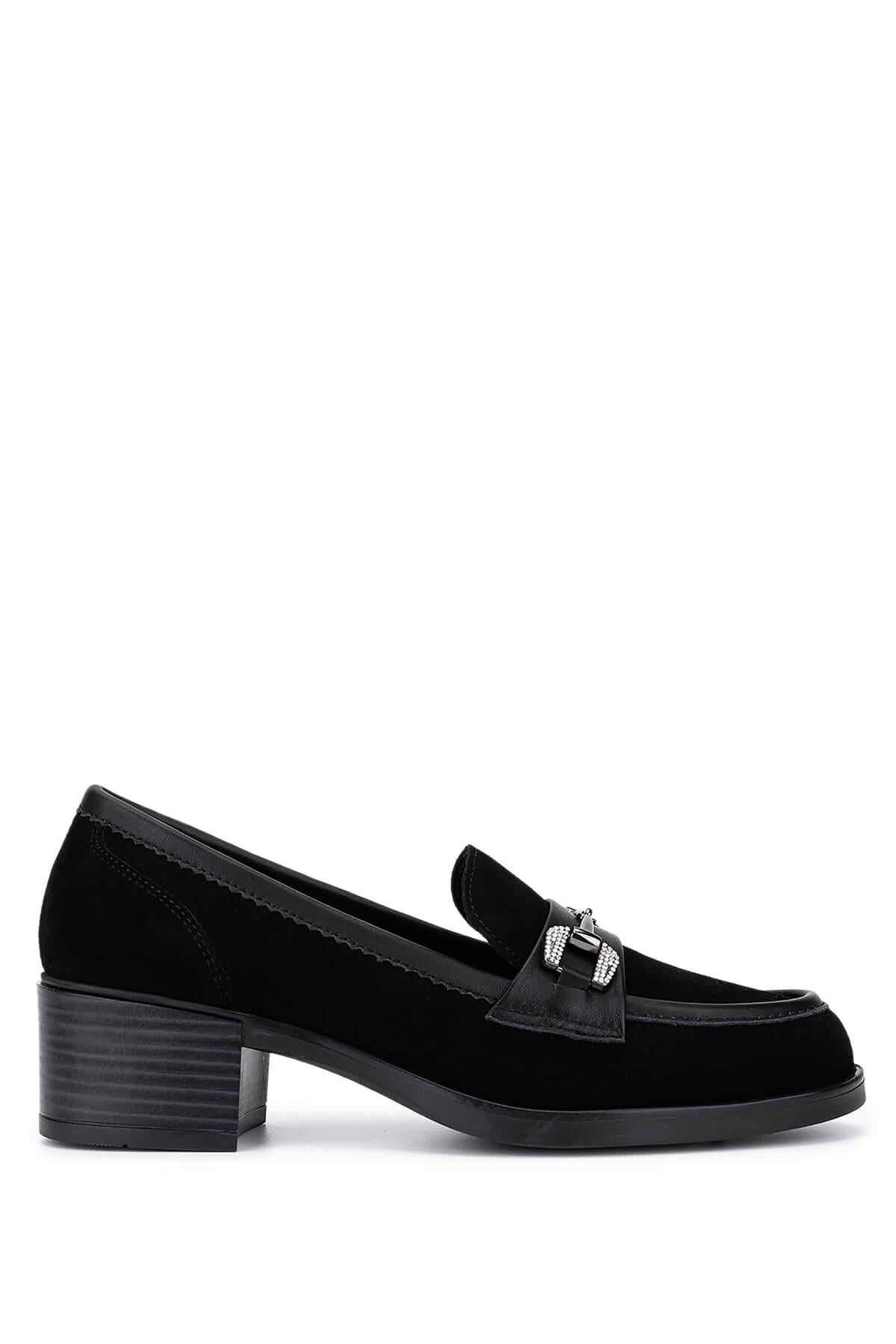 Tamer Tanca Kadın Hakiki Deri Siyah Süet Makosen Ayakkabı