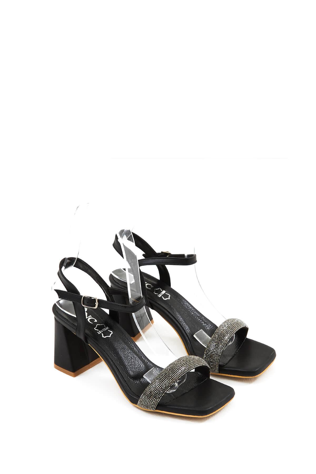 Tamer Tanca Kadın Hakiki Deri Siyah Topuklu Sandalet