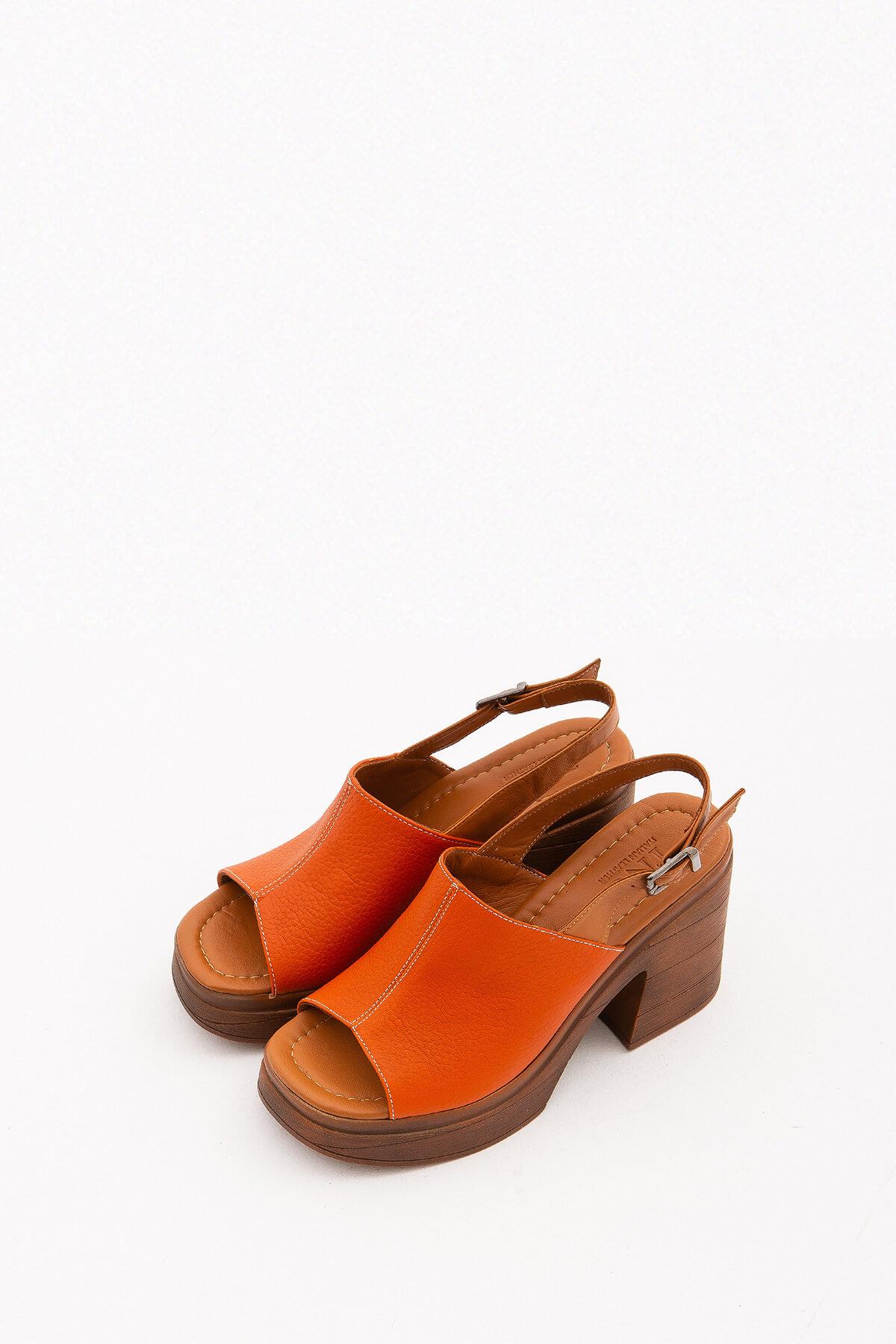Tamer Tanca Kadın Hakiki Deri Turuncu Topuklu Sandalet