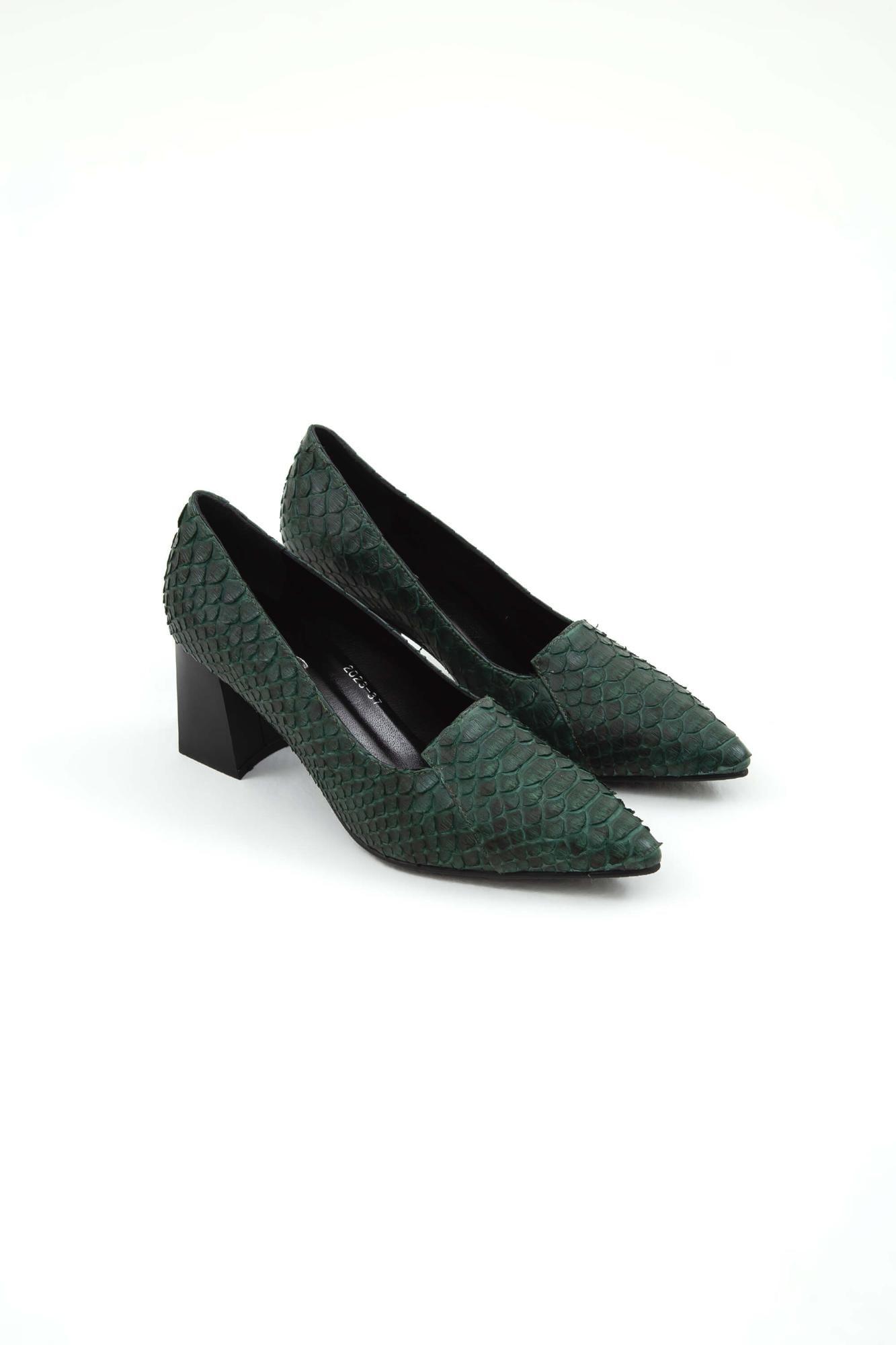 Tamer Tanca Kadın Hakiki Deri Yeşil Yılan Klasik Ayakkabı