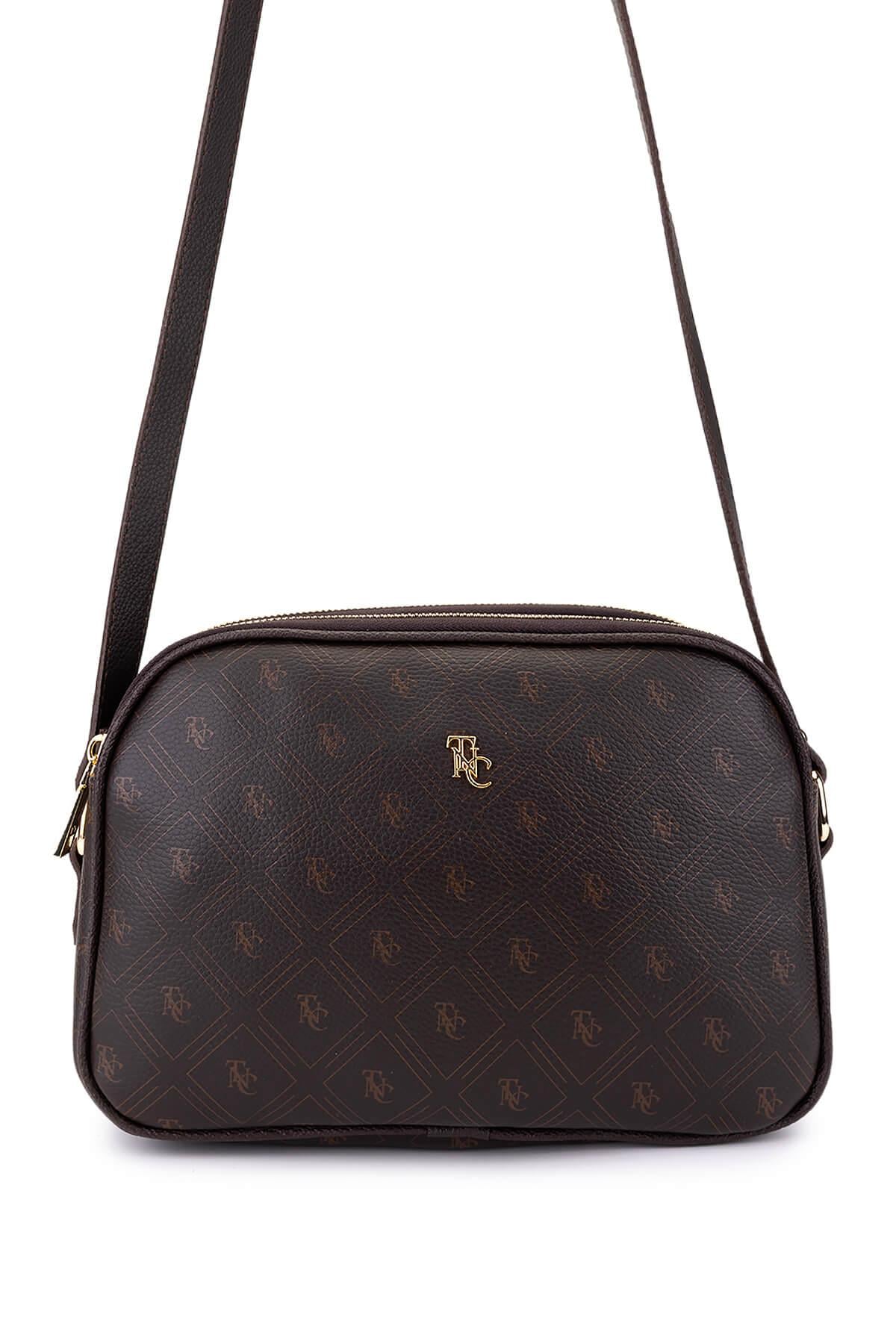 Tamer Tanca Kadın Suni Deri Kahverengi Desen Postacı Çanta