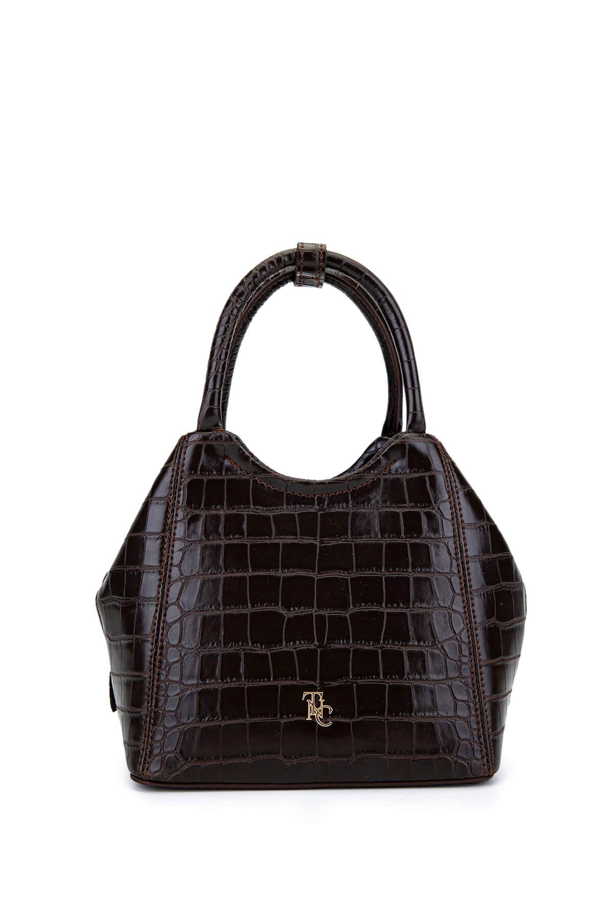 Tamer Tanca Kadın Suni Deri Kahverengi Kroko Kol Çantası