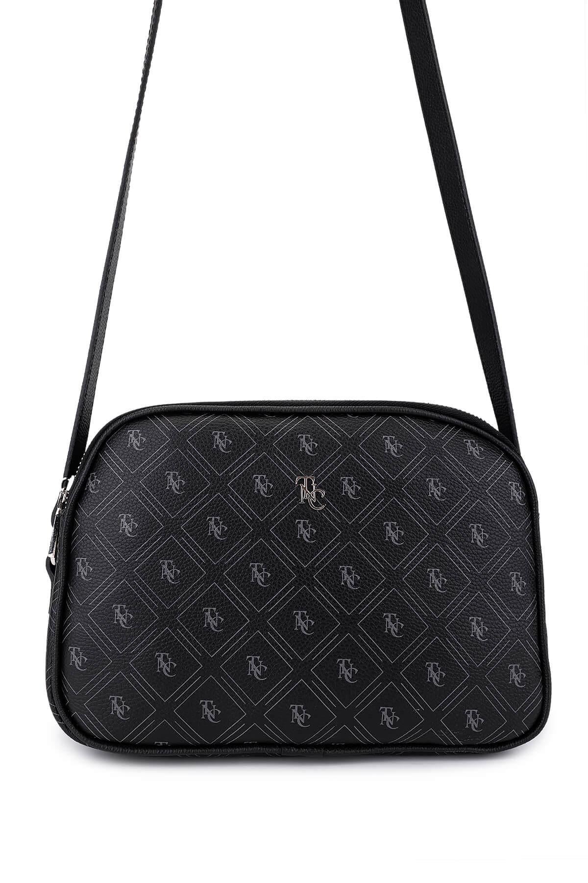 Tamer Tanca Kadın Suni Deri Siyah Desen Postacı Çanta