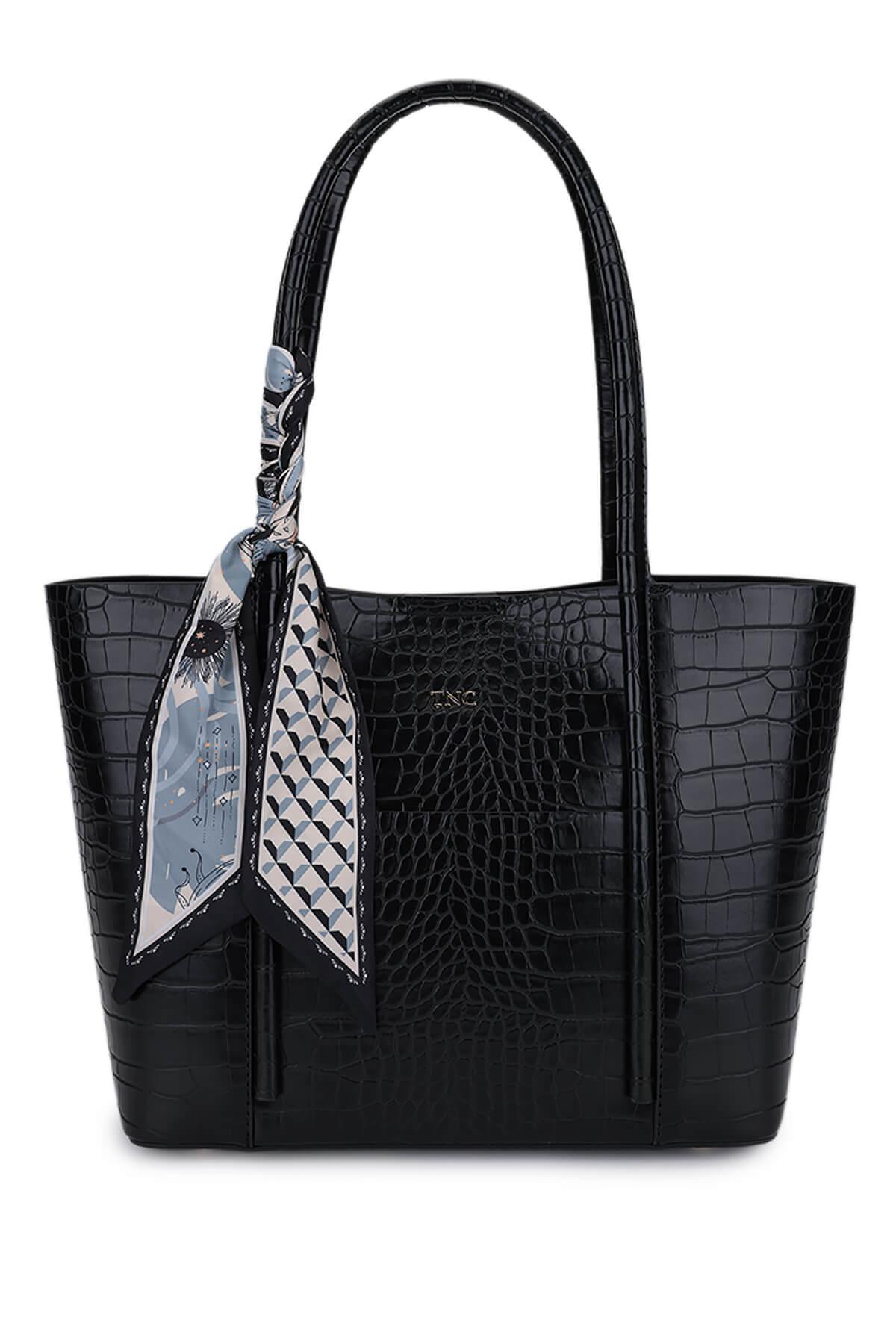 Tamer Tanca Kadın Suni Deri Siyah Kroko Omuz Çanta