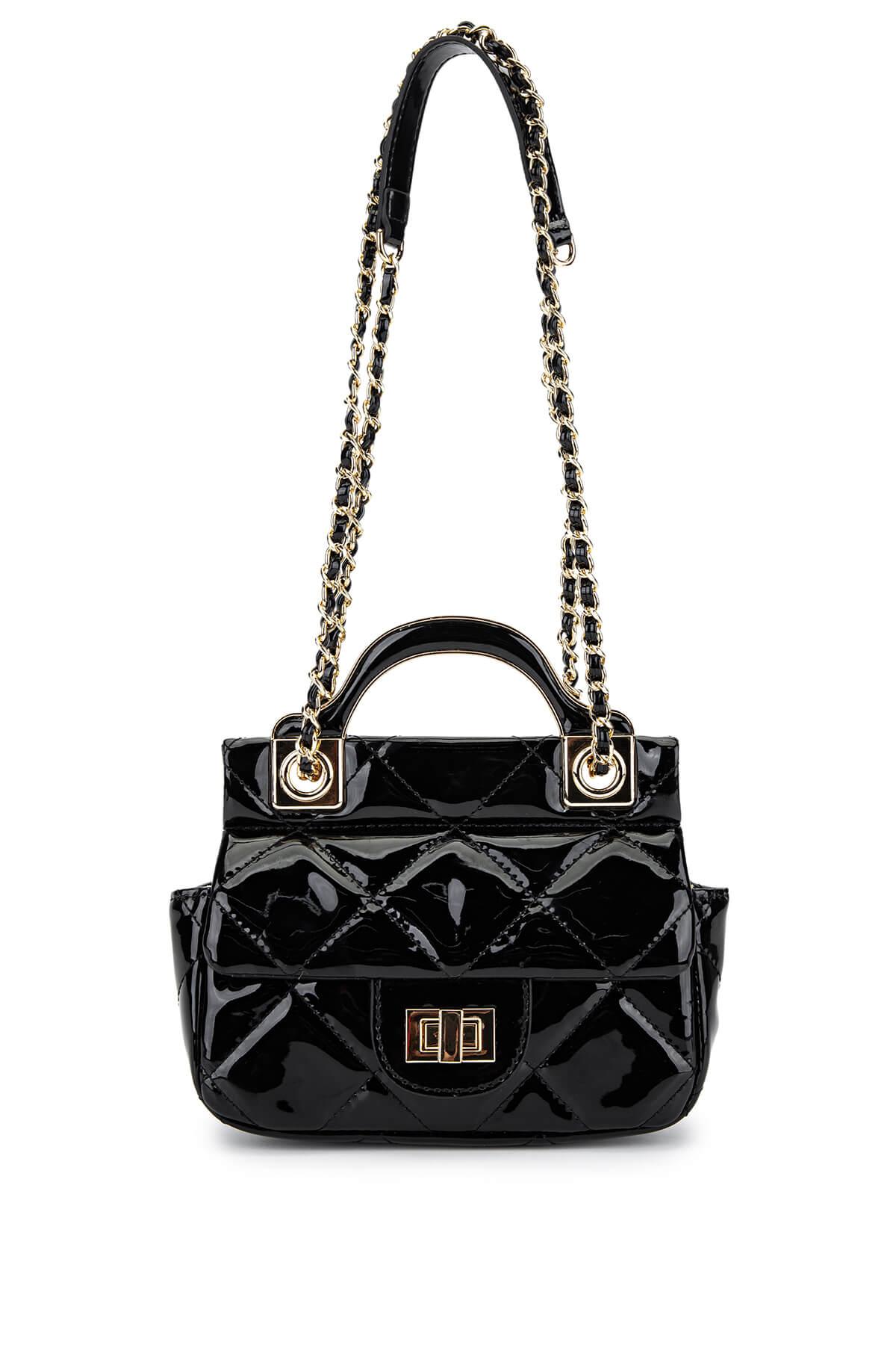 Tamer Tanca Kadın Suni Deri Siyah Rugan Omuz Çanta