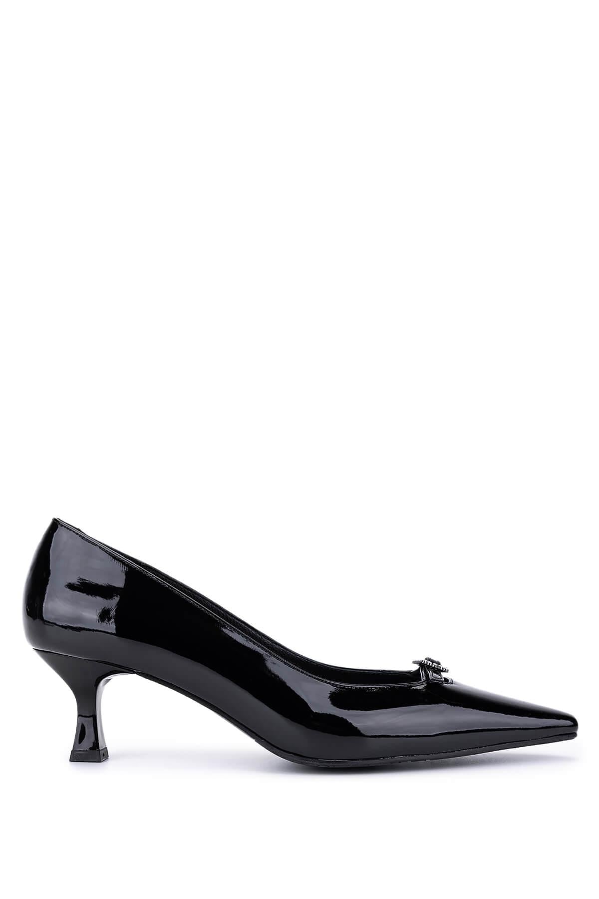 Tamer Tanca Kadın Suni Deri Siyah Rugan Topuklu Ayakkabı