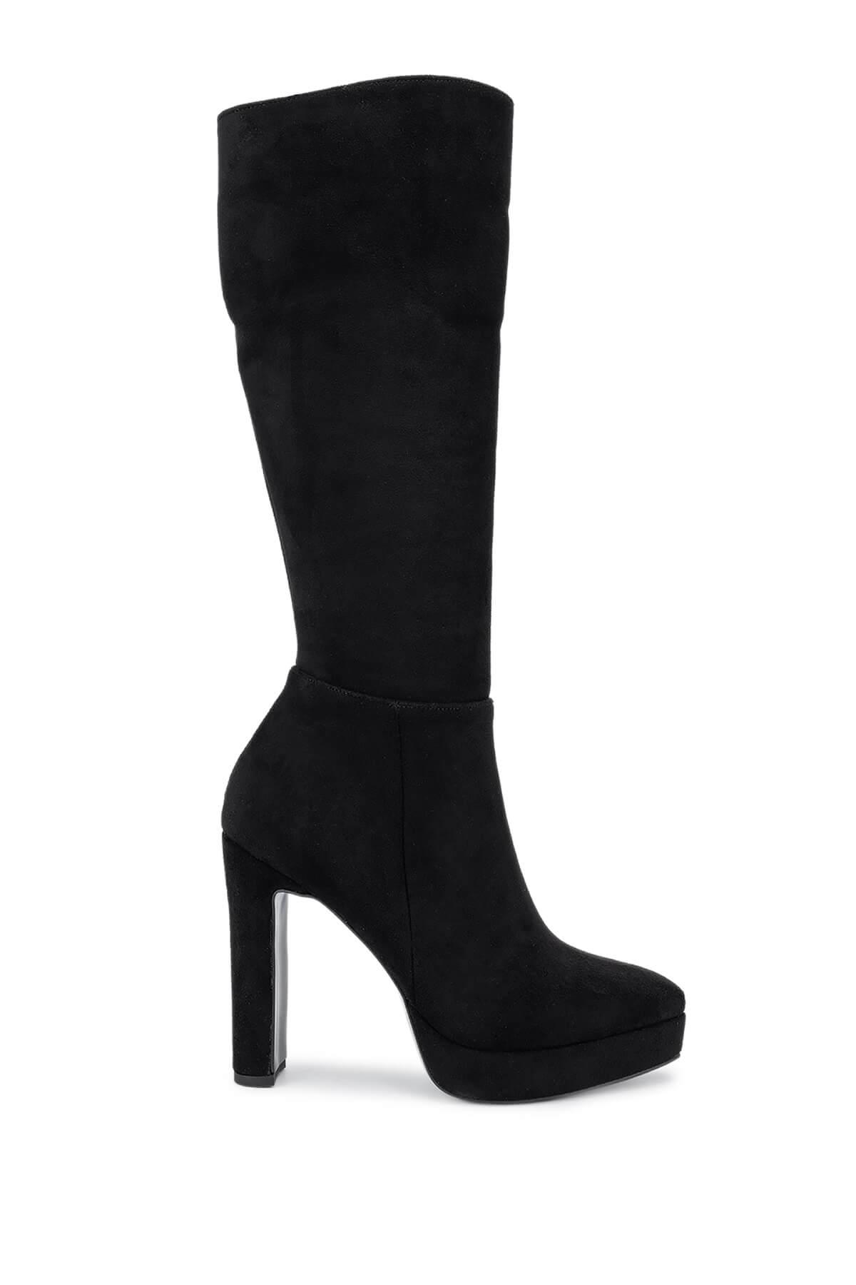 Tamer Tanca Kadın Suni Deri Siyah Süet Topuklu Çizme
