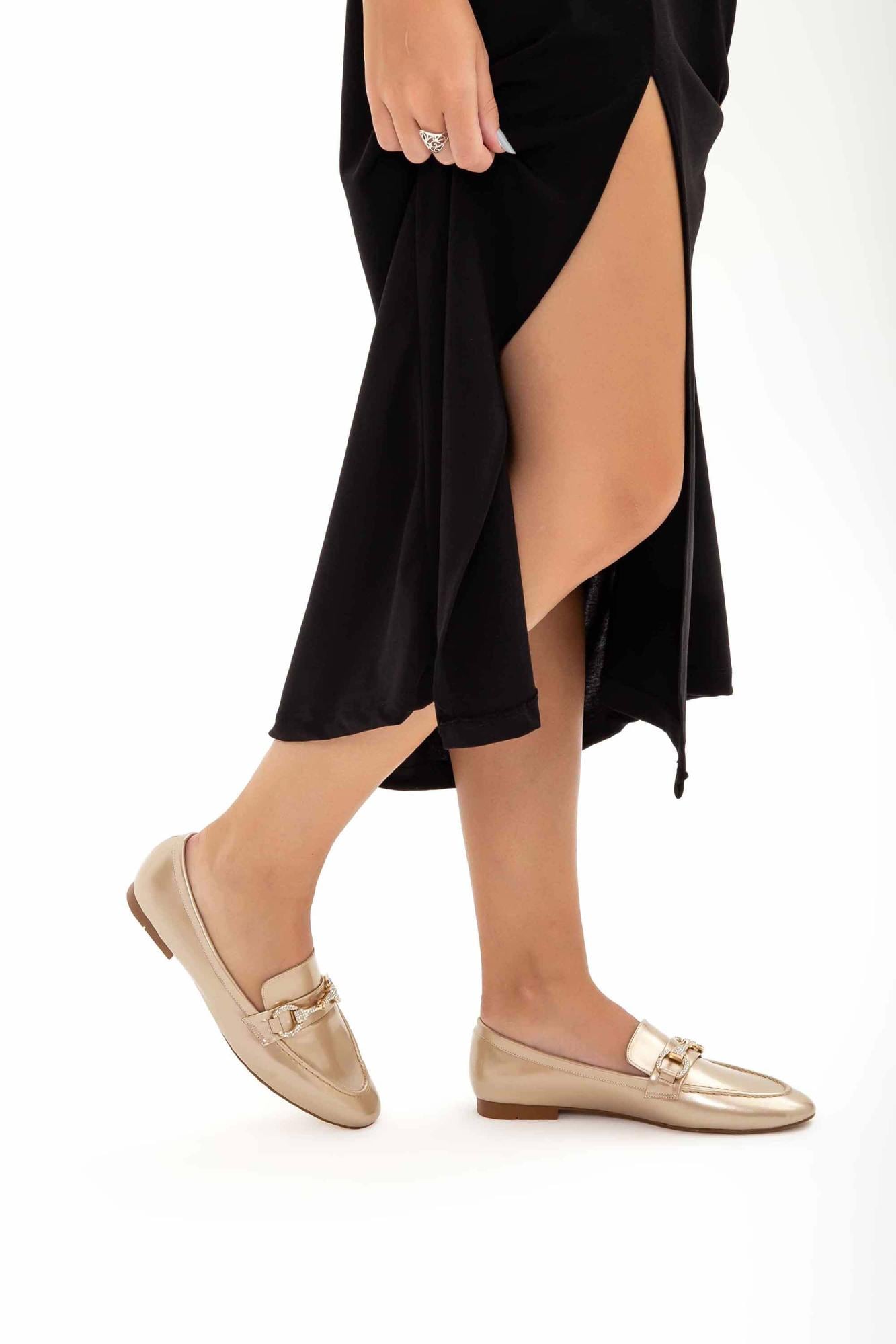 Tamer Tanca Kadın Vegan Altın Rugan Loafer Ayakkabı
