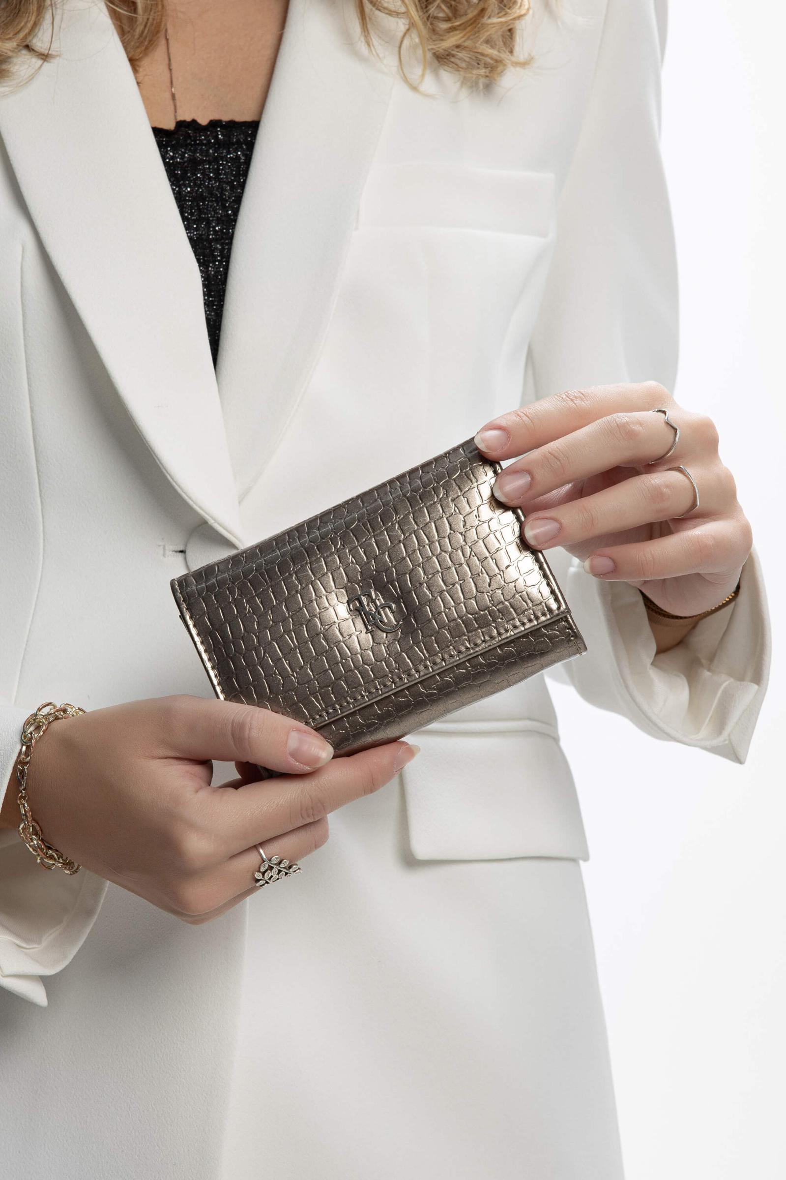Tamer Tanca Kadın Vegan Antrasit Rugan Cüzdan Cuzdan