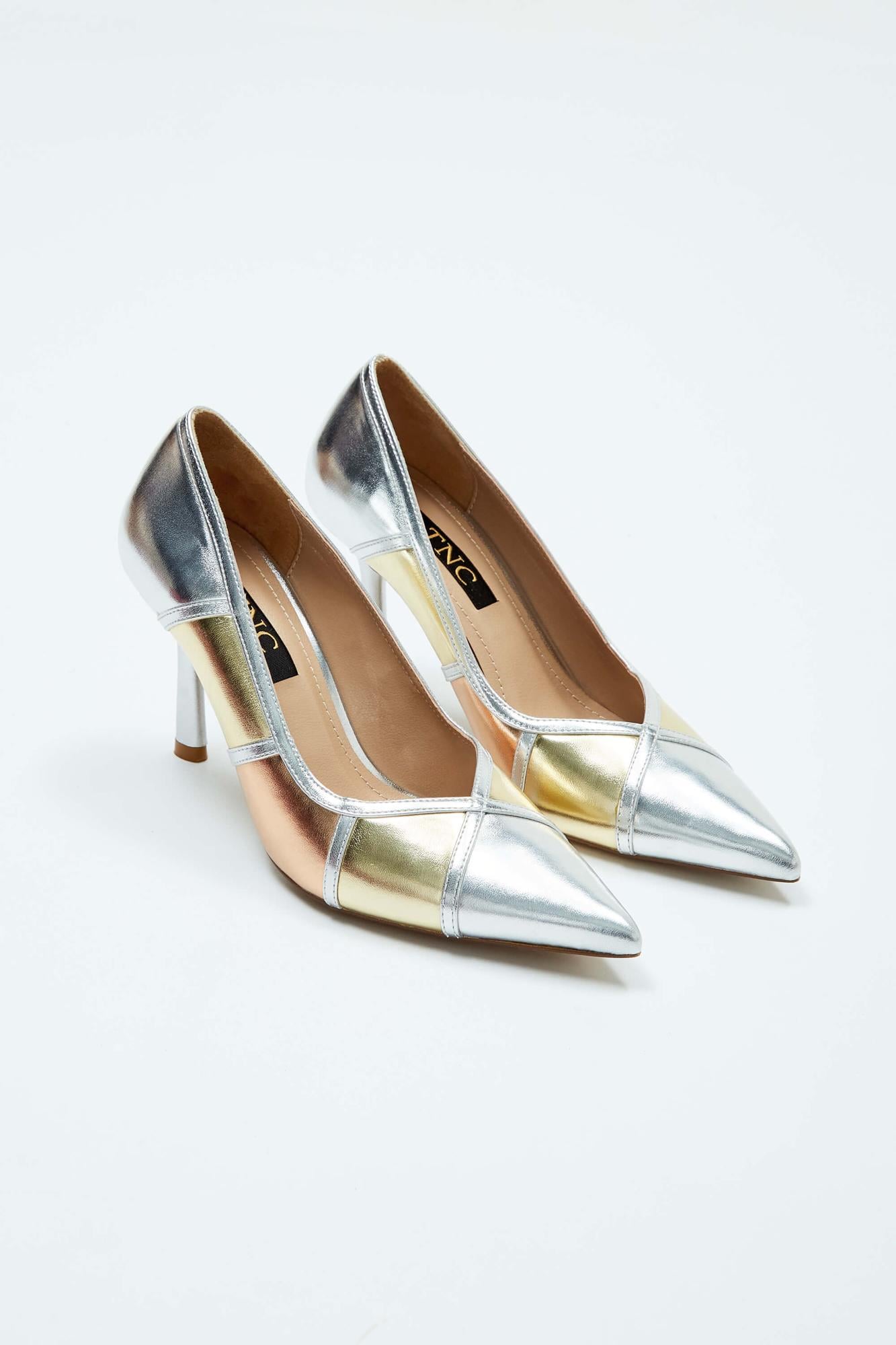 Tamer Tanca Kadın Vegan Gümüş Kombin Stiletto Ayakkabı