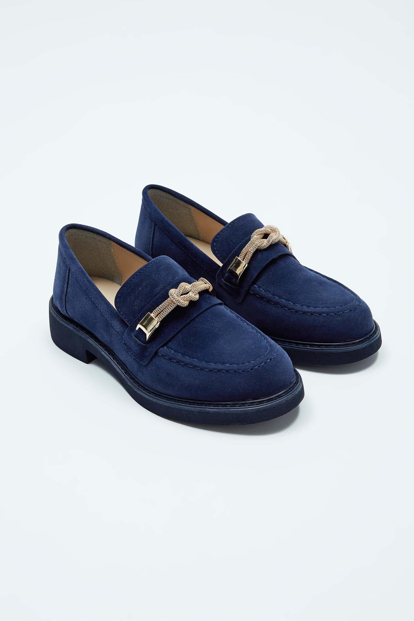 Tamer Tanca Kadın Vegan Lacivert Süet Loafer Ayakkabı