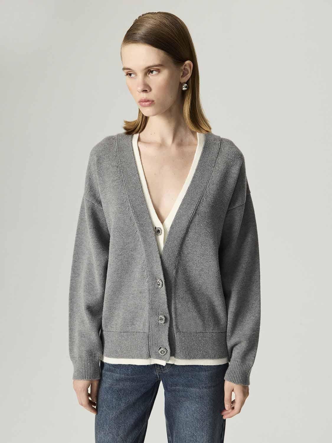 Zamansız çizgilere ışıltılı bir dokunuş katan bu taşlı düğme aksesuarlı triko, klasik şıklığı modern detaylarla buluşturuyor. Regular fit kesimiyle konforlu bir duruş sunarken, yumuşak örme dokusu gün boyu sıcak bir his sağlar. V yaka ve katlı görünümlü tasarımı, zarif bir siluet oluştururken taş işlemeli düğme detaylarıyla sofistike bir parlaklık kazandırır. Astarsız yapısı sayesinde hafif ve rahat bir kullanım sunan bu uzun kollu triko, hem ofis kombinlerinde hem de şehirli günlük stillerde şık bir tamamlayıcı olarak öne çıkar. Kalıp: Regular Fit Beden Önerisi: Kendi bedeninizi tercih etmenizi tavsiye ederiz. Model Ürün Bedeni: S Model Bedeni: Boy 1.77 / Göğüs 84 cm / Bel 57 cm / Kalça 87 cm