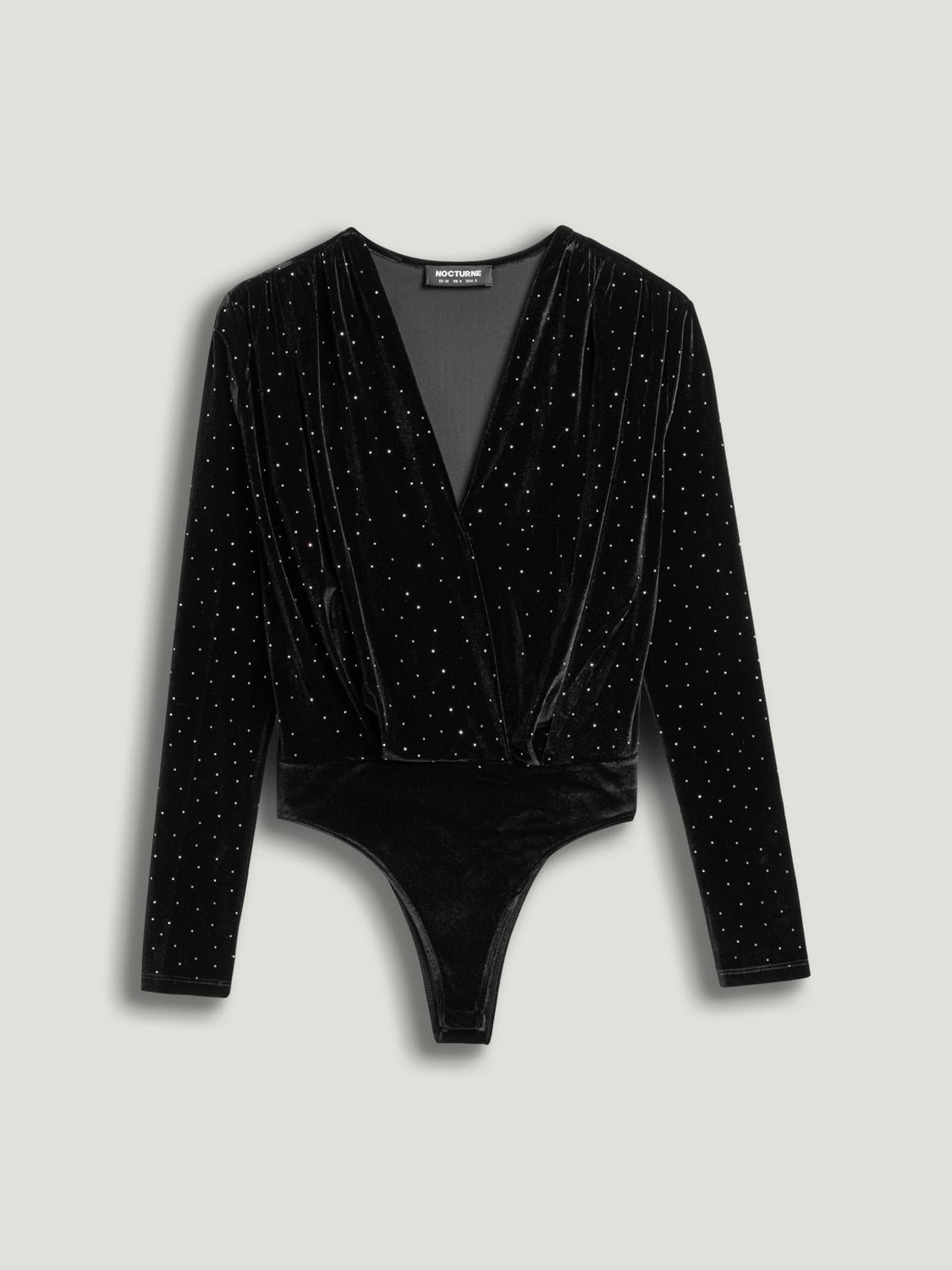 Işıltılı dokusuyla dikkat çeken bu taşlı kadife body, feminen zarafeti modern bir dokunuşla buluşturuyor. Slim fit kesimi ve tam kalıbı sayesinde vücuda kusursuz bir şekilde otururken, kruvaze V yakası dekolteyi zarifçe vurgular. Yumuşak kadife dokusu lüks bir his sunarken, üzerindeki yapıştırma taş detayları ışıltılı bir sofistike hava kazandırır. Uzun kollu formu dengeyi korurken, alttan çıtçıt kapaması pratik bir kullanım sağlar. Astarsız yapısıyla hafif ve esnek olan bu body, akşam davetlerinden özel anlara kadar her stilde zarif bir parıltı yaratmak için mükemmel bir seçim. Kalıp: Slim Fit