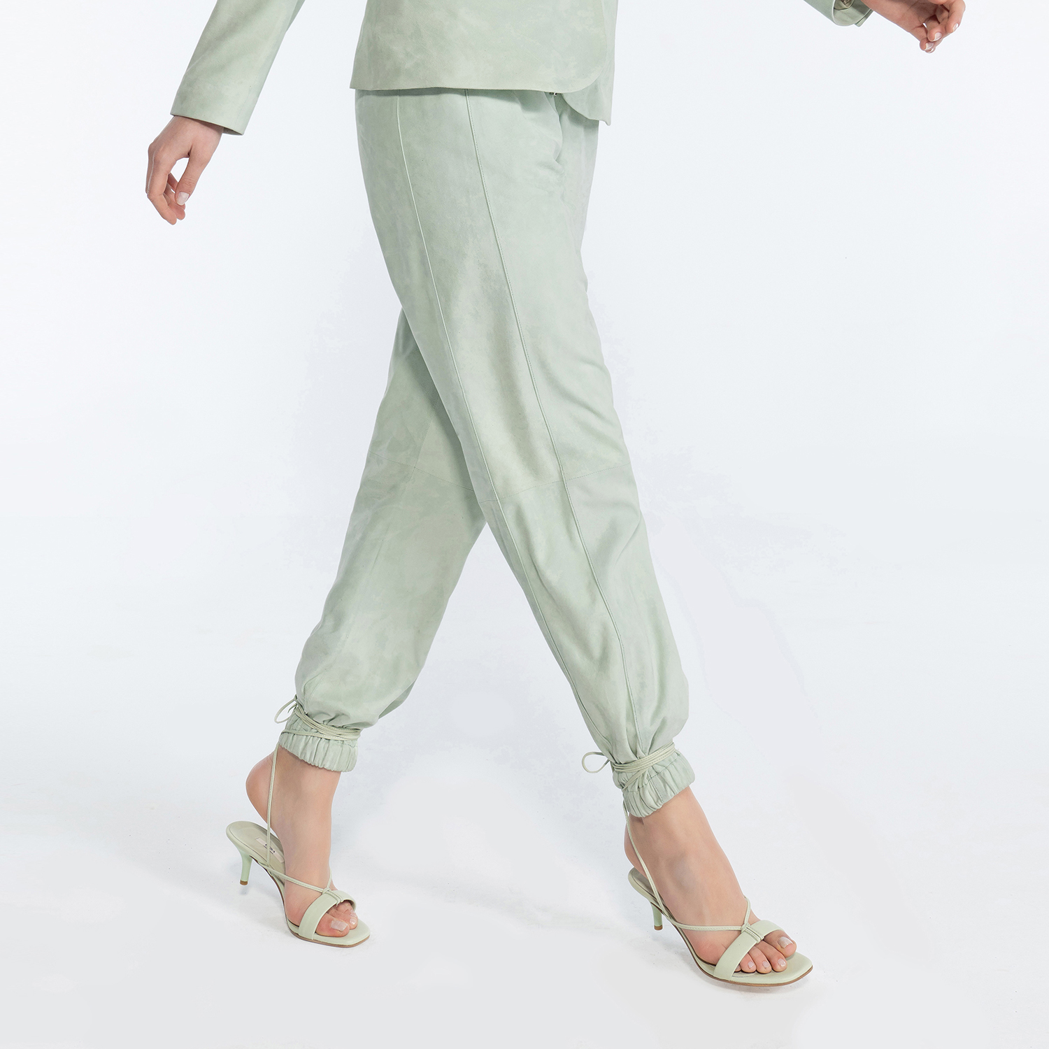 Tekla Yeşil Kadın Yüksek Bel Süet Jogging Pantolon