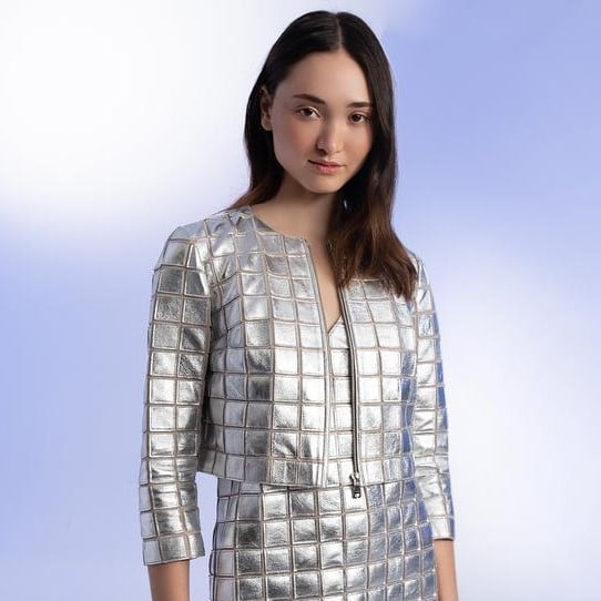 Tarzıyla farklı olmak isteyenler için metalik kare tüllü deri ceket ve elbise tek kelime ile harika! Metalik deri görünümleri son zamanlarda moda dünyasında büyük bir trend haline geldi. Cesur bir görünüm yaratmak isteyenler için idealdir. Gümüş metalik kare tüllü deri ceket, siyah skinny jean ve basit bir tişörtle kombinlendiğinde, harika bir gece ve gündüz görünümü ortaya çıkarabilir veya yine aynı tarzda tasarlanmış kare tüllü metalik elbise ile total bir look ile tarzınızı yaratabilirsiniz. Kadın yuvarlak yakalı geometrik desenli metalik deri ceket. %100 Koyun derisidir. Önden metal fermuar kapamalıdır. Nikel kaplamalıdır ve cebi yoktur. Kadın yuvarlak yakalı geometrik desenli metalik deri ceket. Önden metal fermuar kapamalıdır. Esneyen tül desteğiyle bedene yerleştirilen geometrik şekilde kesilen deriler ile özel deri panel ve tül laminasyon çalışması yapılmıştır. %100 koyun derisi olup, astarsız çalışılmıştır. Bu ürün, et endüstrisinin yan ürünü olarak elde edilen ve sürdürülebilir yöntemler ile Leather Working Group Altın sertifikalı Desa tesislerinde tabaklanan deriler kullanılarak üretilmiştir.-Tarzıyla farklı olmak isteyenler için metalik kare tüllü deri ceket ve elbise tek kelime ile harika! Metalik deri görünümleri son zamanlarda moda dünyasında büyük bir trend haline geldi. Cesur bir görünüm yaratmak isteyenler için idealdir. Gümüş metalik kare tüllü deri ceket, siyah skinny jean ve basit bir tişörtle kombinlendiğinde, harika bir gece ve gündüz görünümü ortaya çıkarabilir veya yine aynı tarzda tasarlanmış kare tüllü metalik elbise ile total bir look ile tarzınızı yaratabilirsiniz. Kadın yuvarlak yakalı geometrik desenli metalik deri ceket. %100 Koyun derisidir. Önden metal fermuar kapamalıdır. Nikel kaplamalıdır ve cebi yoktur. Kadın yuvarlak yakalı geometrik desenli metalik deri ceket. Önden metal fermuar kapamalıdır. Esneyen tül desteğiyle bedene yerleştirilen geometrik şekilde kesilen deriler ile özel deri panel ve tül laminasyon çalışması yapılmıştır. %100 koyun derisi olup, astarsız çalışılmıştır. Bu ürün, et endüstrisinin yan ürünü olarak elde edilen ve sürdürülebilir yöntemler ile Leather Working Group Altın sertifikalı Desa tesislerinde tabaklanan deriler kullanılarak üretilmiştir.