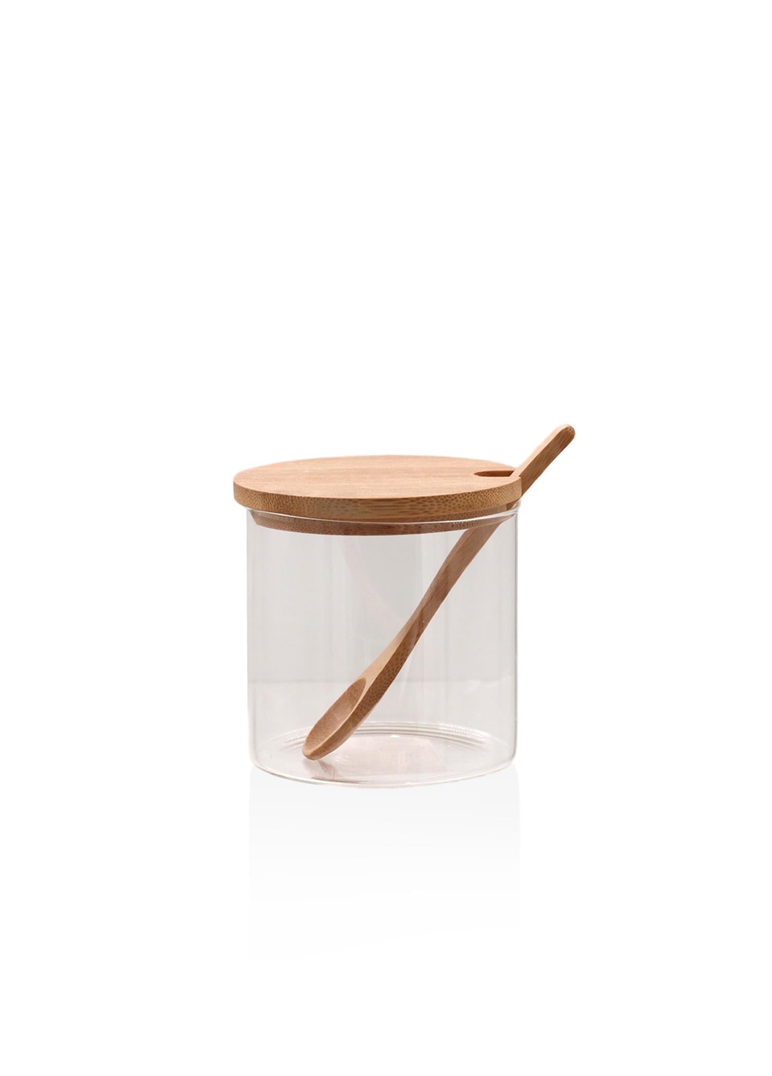 Ürün ölçüsü: 350 ml Modern ve fonksiyonel tasarımı ile bambu kapaklı ve kaşıklı borosilikat cam kavanoz, gıdayı saklamak ve sofra kompozisyonunuza zarafet katmak için idealdir. Kapağı, gıdaların özelliklerinin korunmasında daha fazla verim sağlar. Cam kısmı bulaşık makinasında yıkamaya uygundur.