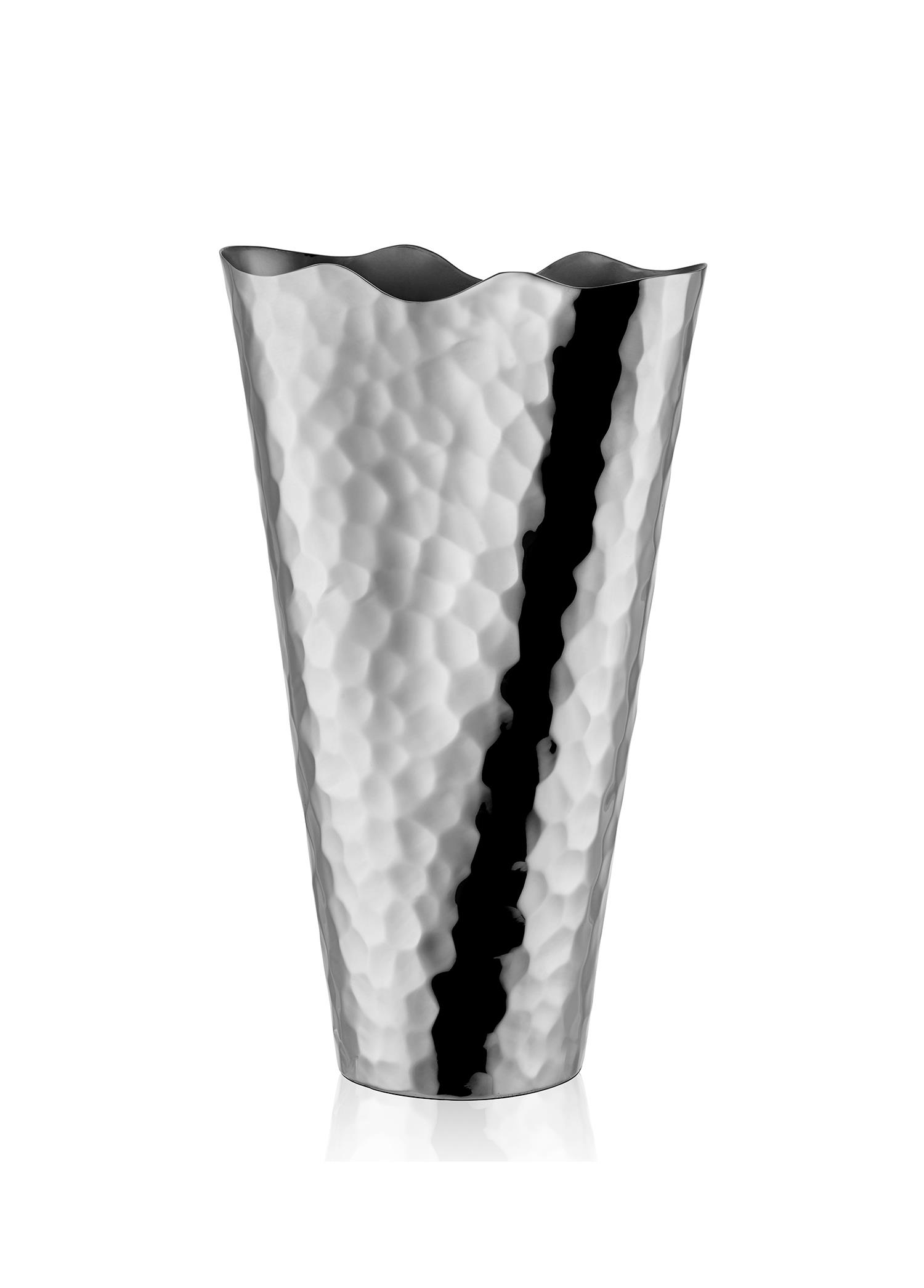 Ürün ölçüsü: 25x10x41 cm Renk: Gümüş Malzeme: Metal Dekoratif vazo, masa üstü, tezgah, kitaplık veya başka bir dekorasyon öğesi üzerine yerleştirilerek mekâna görsel çekicilik ekler. Çiçekler veya bitki düzenlemeleri ile kullanıldığında, dekoratif vazolar canlılık ve renk katarak mekânın atmosferini canlandırabilirler. Dekoratif vazolar, evin veya ofisin karakterini ve stilini yansıtmada ve kişiselleştirmede önemli bir rol oynarlar. Hafif nemli bez ile temizlenmesi önerilir.