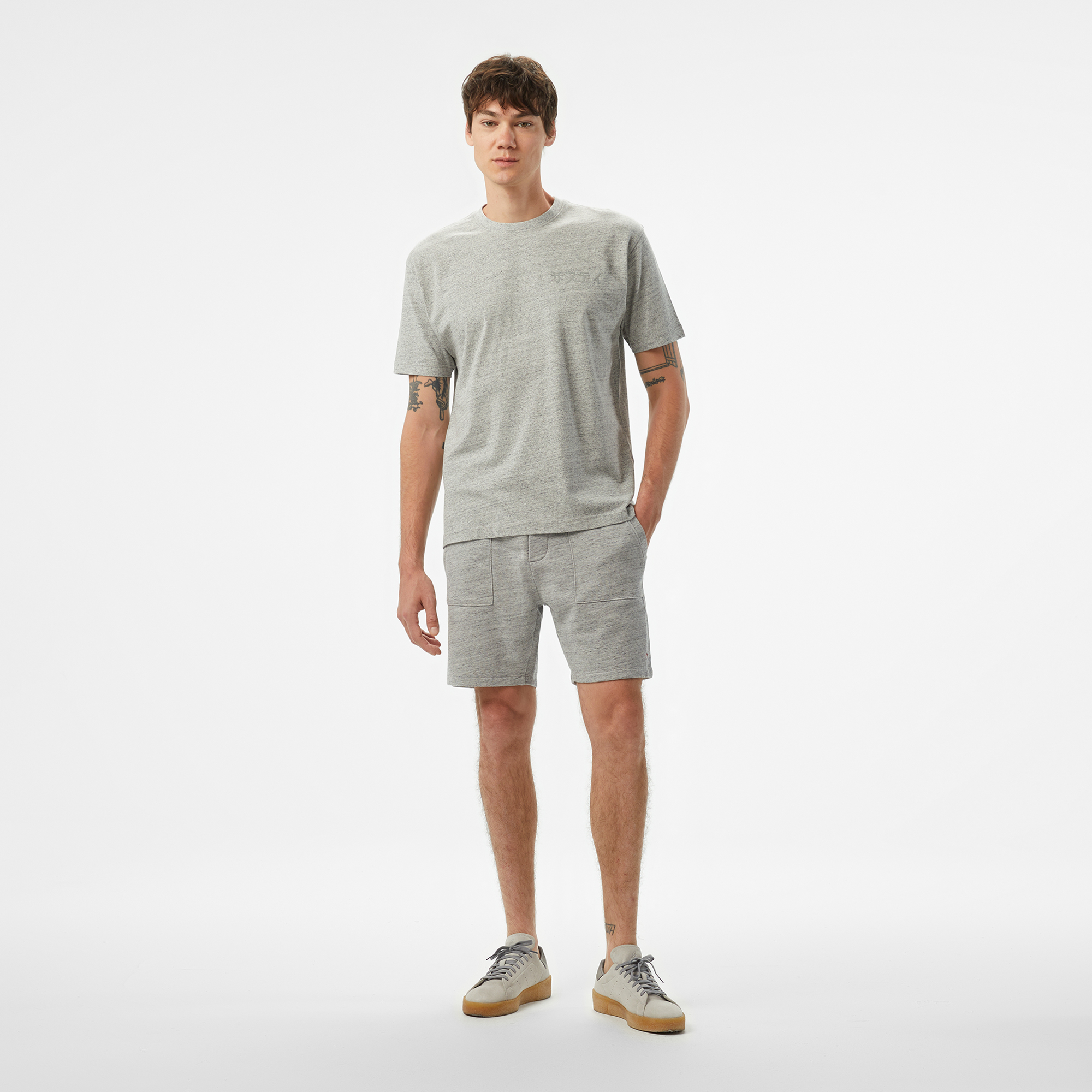 Gri rengiyle basic t-shirt ve spor tişörtlerle uyumlu kombinler oluşturur