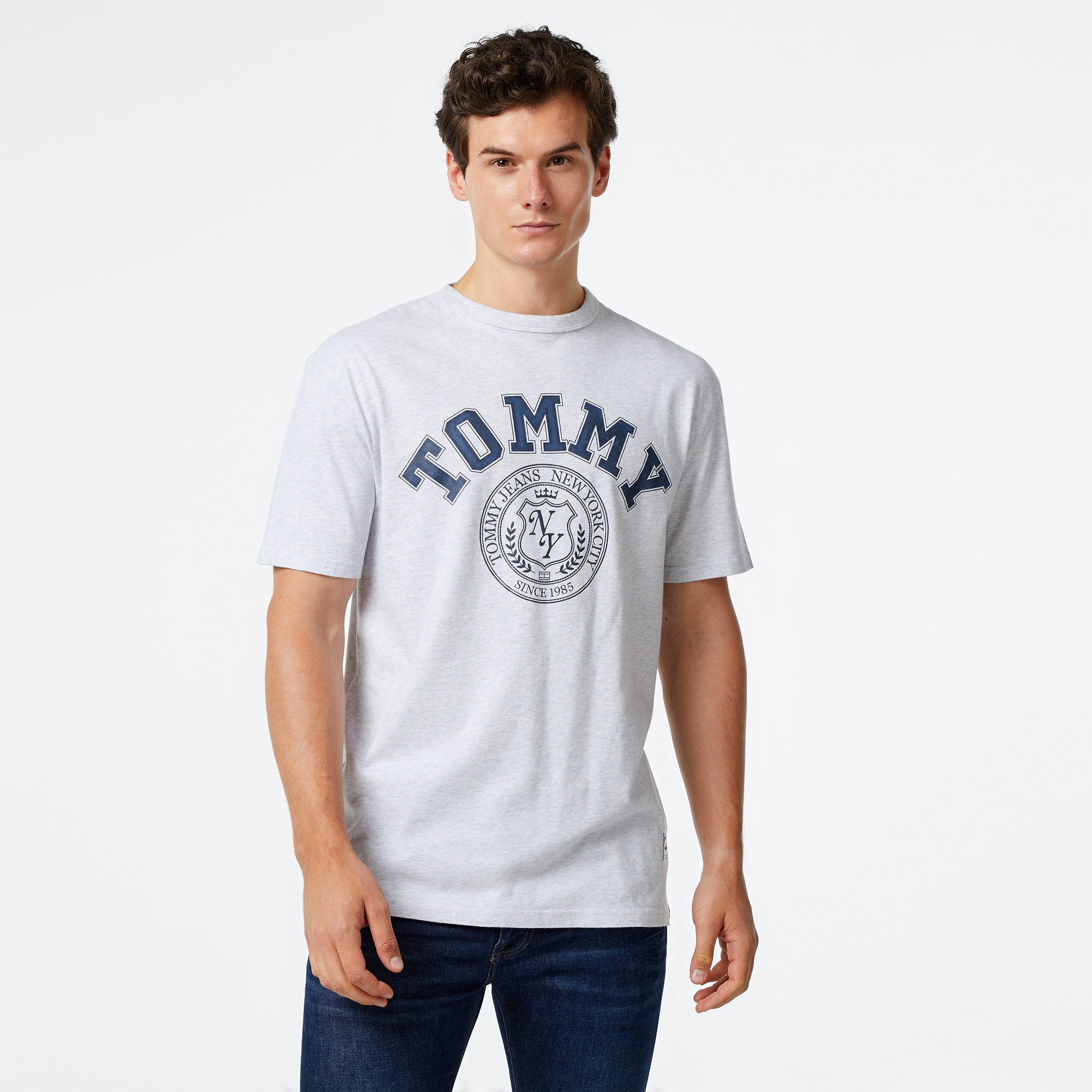 Tommy Hilfiger Jeans Vintage Arch Tommy Erkek Gri T-Shirt