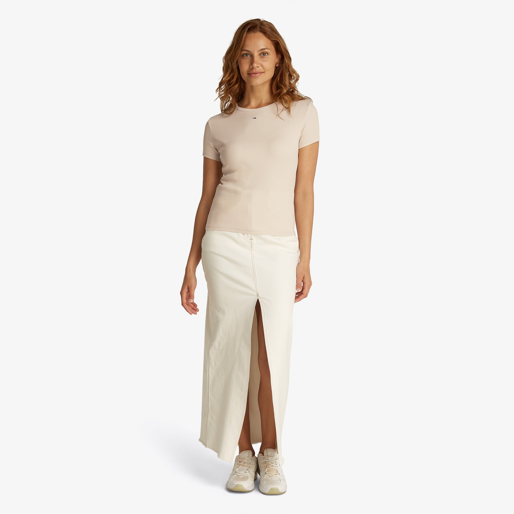 TOMMY HILFIGER kadın tişörtü, zarif ve minimalist tasarımıyla günlük şıklığını tamamlamak için mükemmel bir seçenek! Bu şık tişört, yumuşak dokusu ve nefes alabilen kumaşı ile tüm gün rahatlık sağlar. Açık bej rengi, kolayca kombinlenebilir ve her türlü aksesuarla uyum sağlar.
