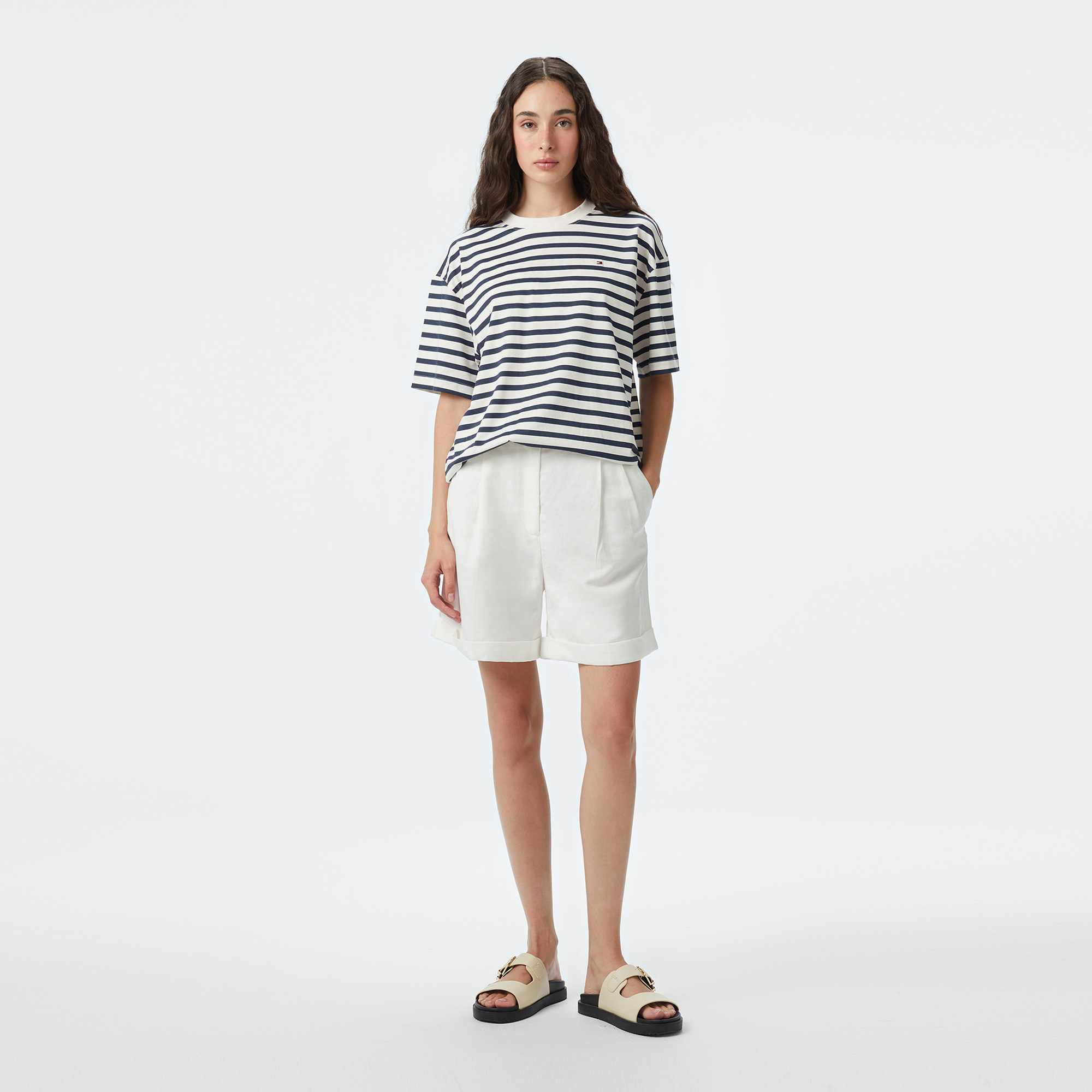 TOMMY HILFIGER Kadın Sort, rahat ve şık tasarımıyla günlük kombinlerini tamamlaman için mükemmel bir tercih! Hafif kumaşı ve zarif kesimi sayesinde yaz aylarında konforu ve tarzı bir arada yaşayacaksın. İster sahil yürüyüşlerinde ister şehirdeki buluşmalarında bu şortla modern ve rahat bir stil yaratabilirsin.