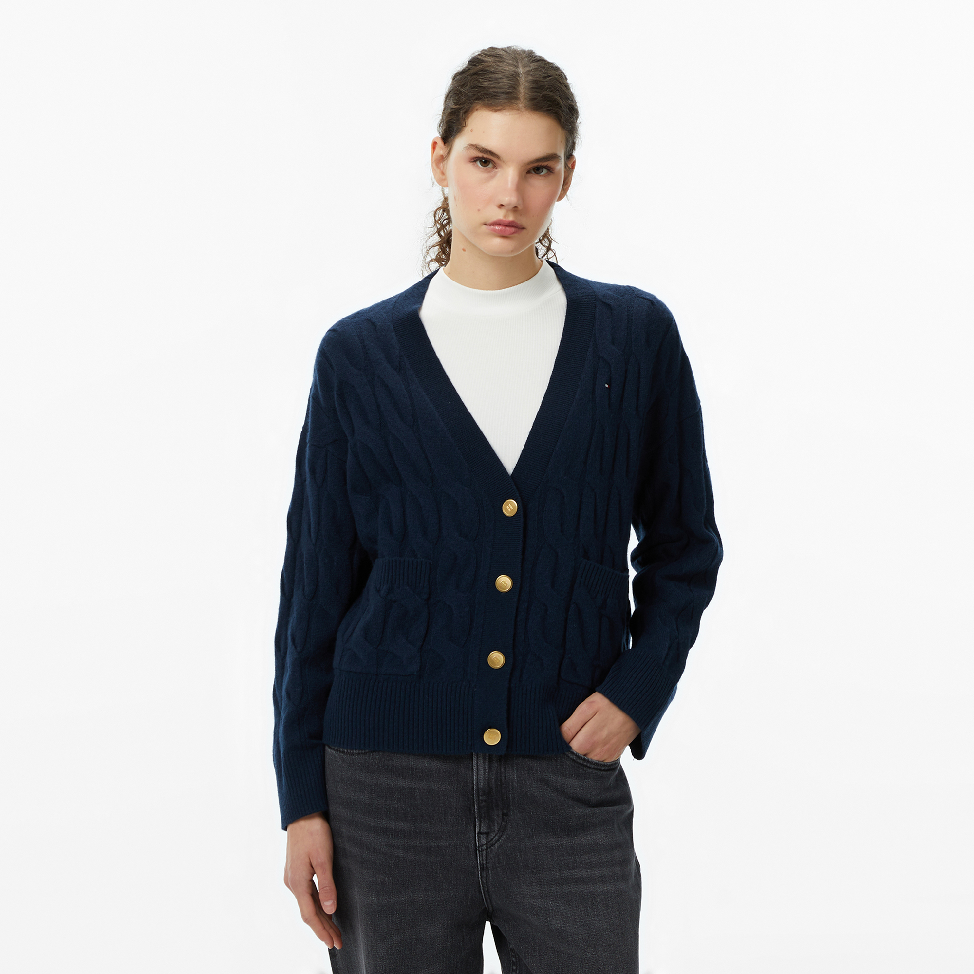 Tommy Hilfiger Mainline Soft Wool Cable Cardigan Kadın Lacivert Hırka