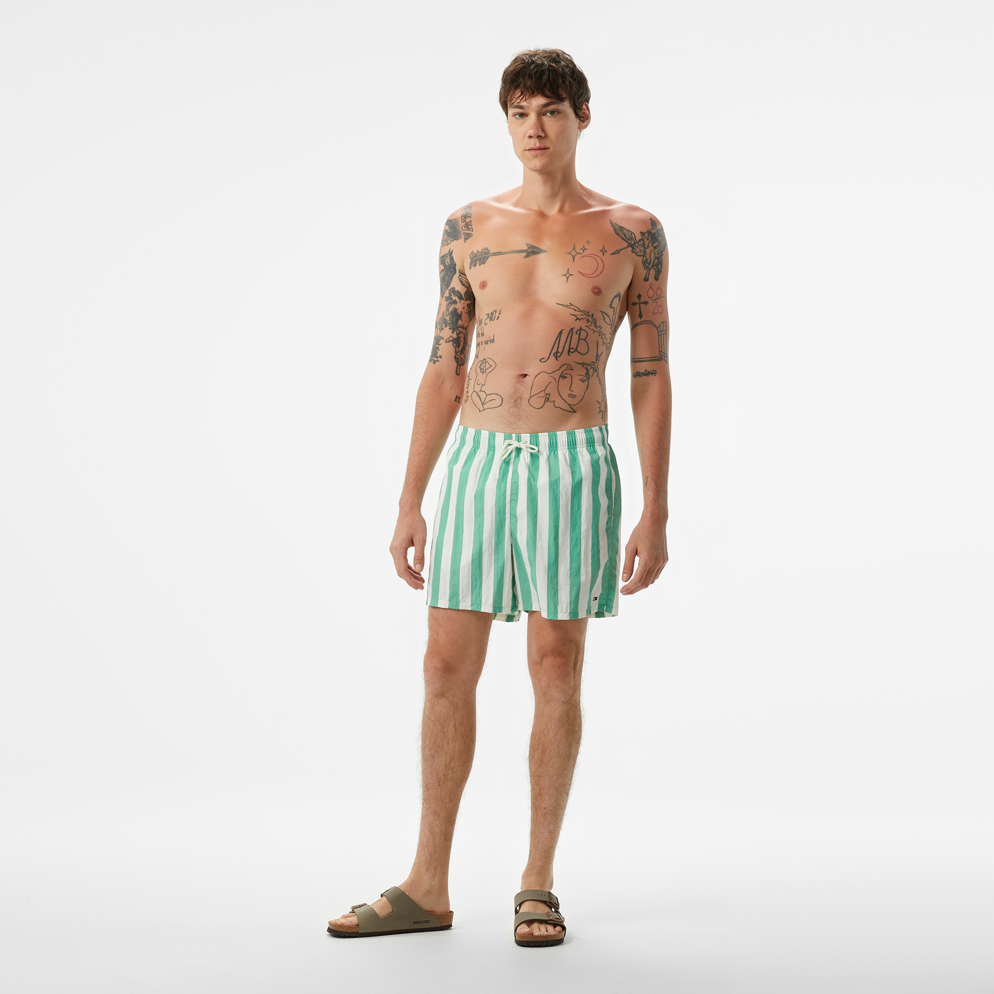 Tommy Hilfiger, erkekler için bej renkli modern bir mayo sunuyor. Orta boyu ve bağcıklı bel detayı ile mükemmel uyum sağlar. Yüksek kaliteli kumaşı sayesinde rahatlıkla kullanılabilir. Bu mayo, plajda ya da havuzda modernlığından ödün vermek istemeyenler için idealdir.