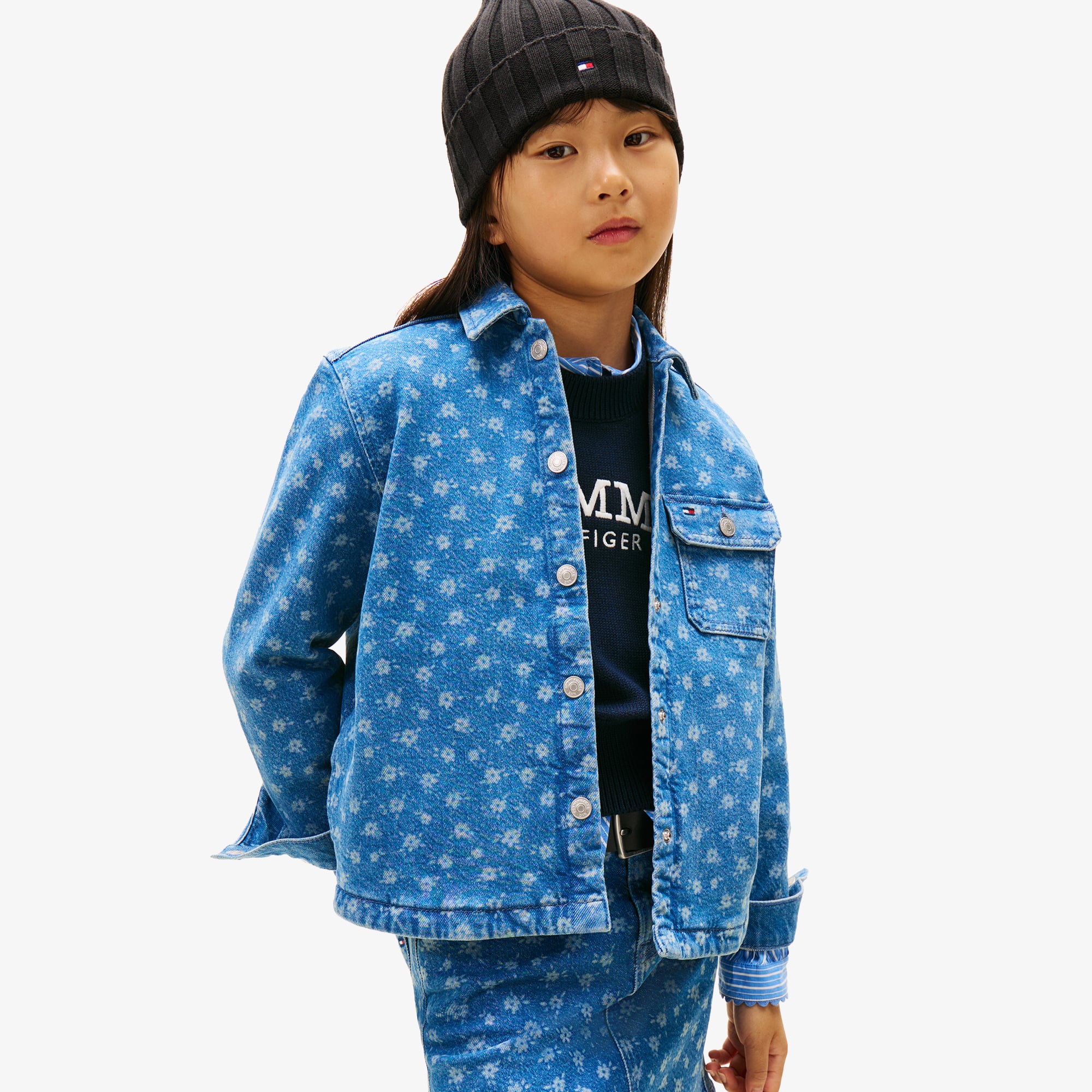 Tommy Hilfiger Overshirt Flower Aop Çocuk Mavi Gömlek