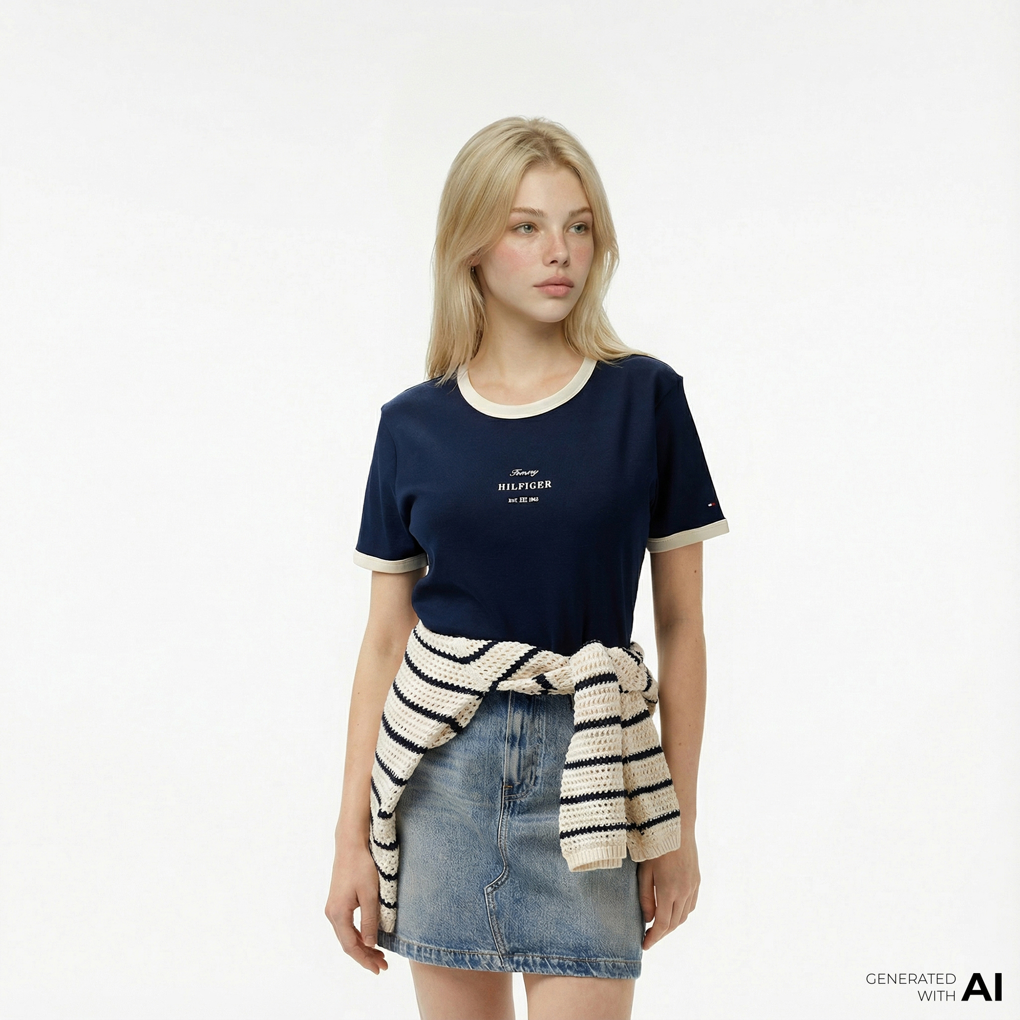 TOMMY HILFIGER kadın tişörtüyle şıklığını her zaman ön planda tut! Bu zarif ve modern tasarım, konfor ve stili bir arada sunuyor. Lacivert rengi ile kolayca kombin yapabilir, günlük veya özel günlerde rahatlıkla tercih edebilirsin.
