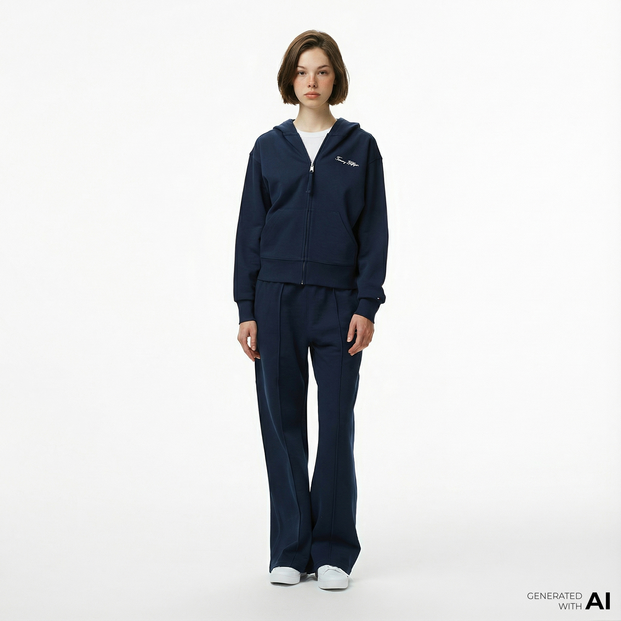 Tommy Hilfiger Script Straight Pique Kadın Lacivert Eşofman Altı