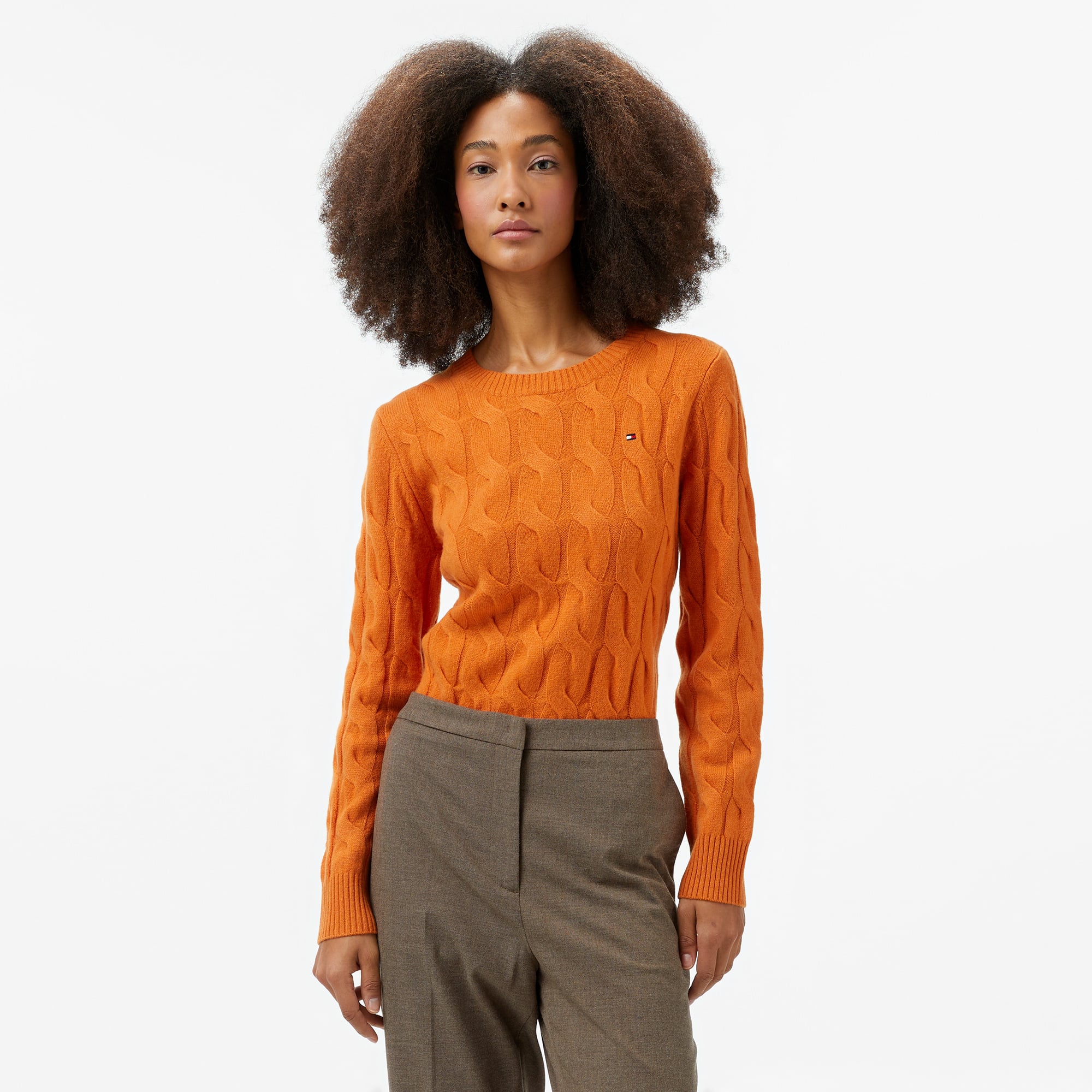 Tommy Hilfiger Soft Wool Cable Kadın Turuncu Kazak Özellikleri