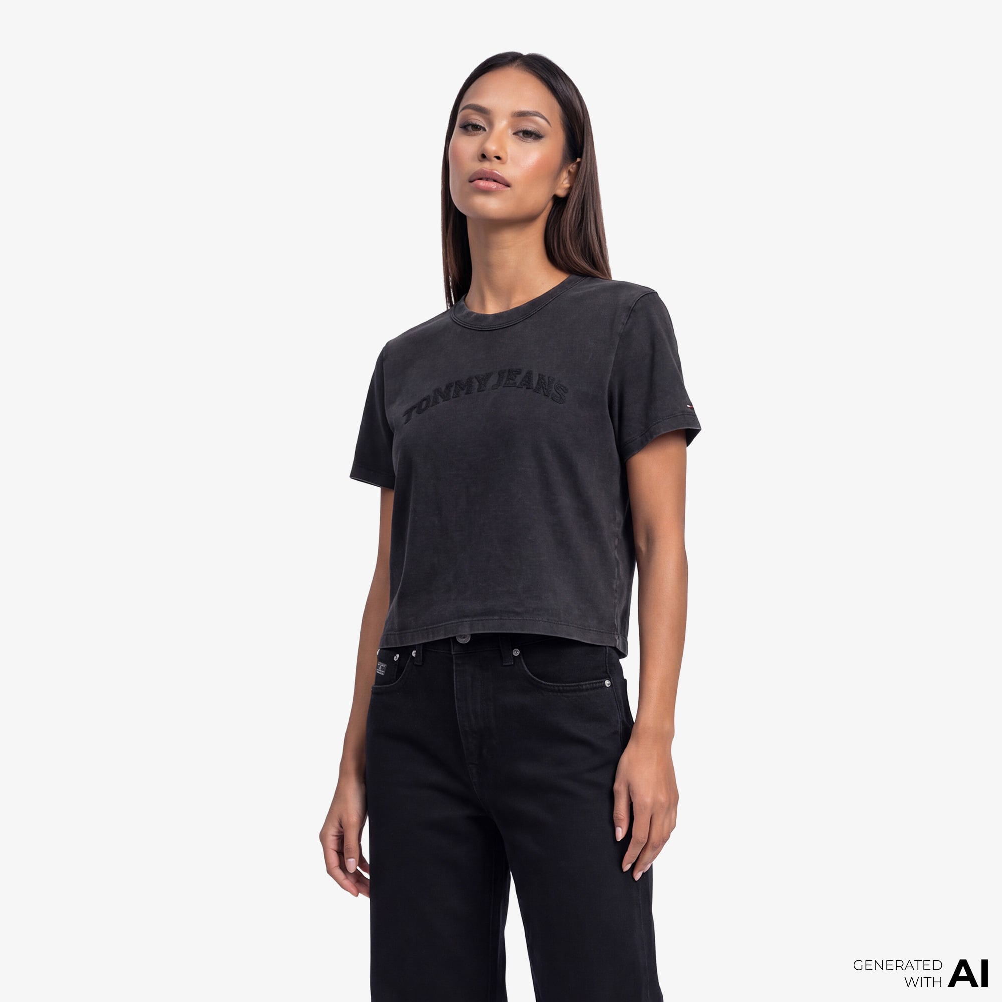 Tommy Hilfiger Varsity Prep Kadın Siyah Tişört, ikonik Tommy Hilfiger estetiğini modern bir kesimle birleştirir.